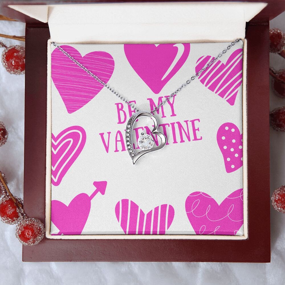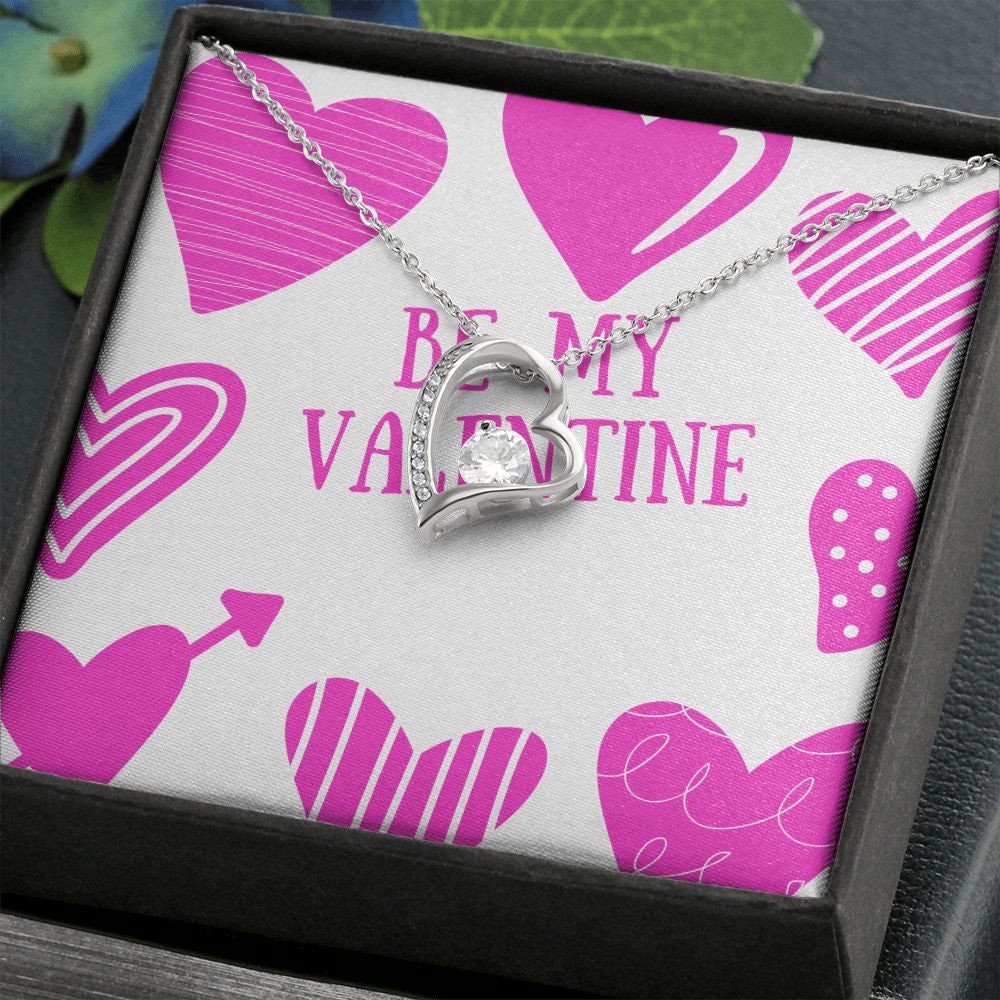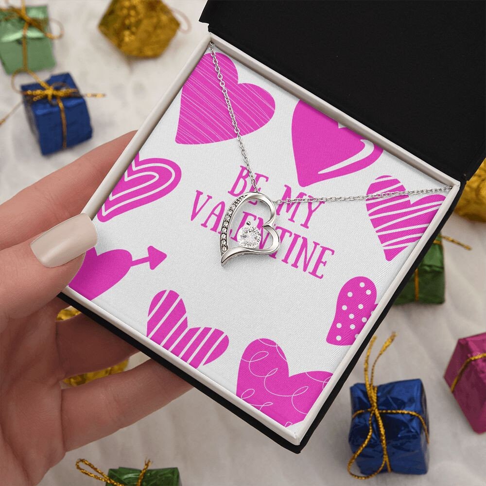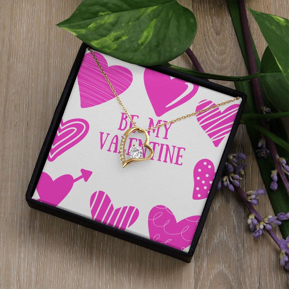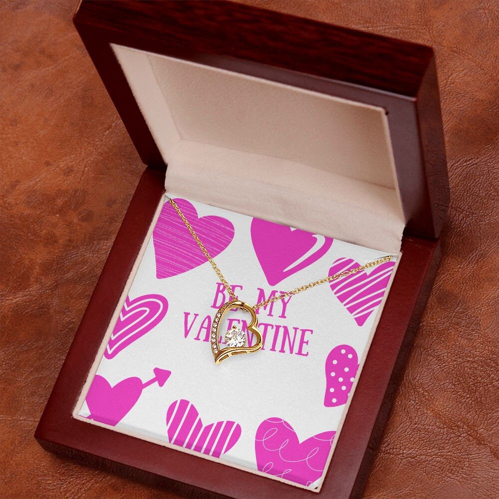 The dazzling Forever Love Necklace is sure to make her heart melt! This necklace features a stunning 6.5mm CZ crystal surrounded by a polished heart pendant embellished with smaller crystals to add extra sparkle and shine. Beautifully crafted with either a white gold or yellow gold finish, be sure to give her a classic gift she can enjoy everyday.14k white gold finish or 18k yellow gold finish6.5mm round cut cubic zirconia stonePendant dimensions: 0.8" (2.2cm) height / 0.7" (1.8cm) widthAdjustable chain length: 18" - 22" (45.72cm - 55.88cm)Lobster clasp attachmentYour piece is lovingly packaged in a complimentary soft touch box for easy gifting. Elevate your presentation by upgrading to the mahogany style luxury box, which features a brilliant LED spotlight.