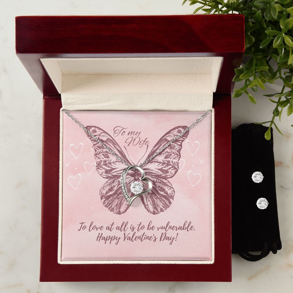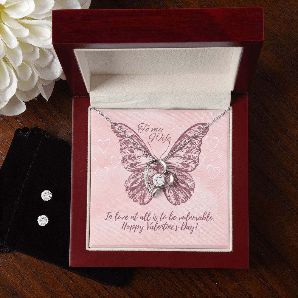 Butterfly Heart Valentine's Forever Heart Necklace & Cubic Zirconia Earring Set