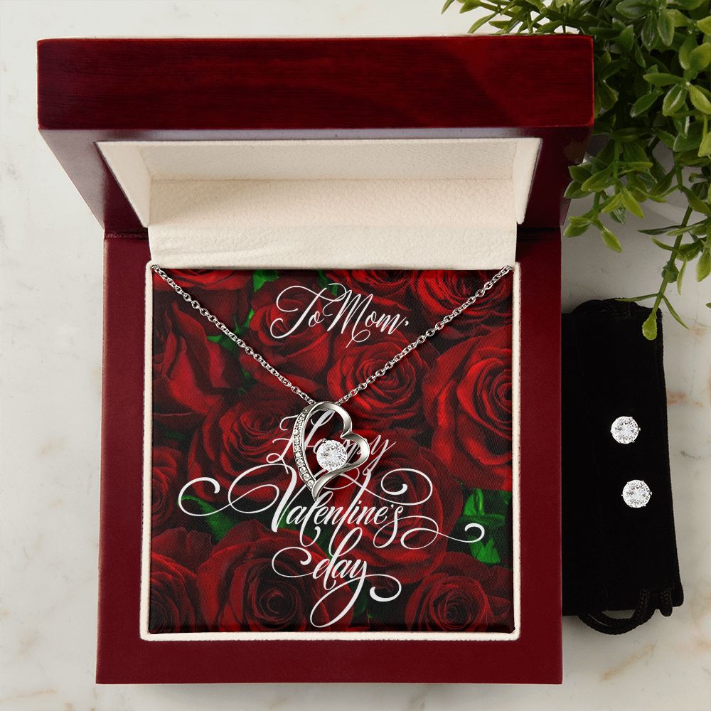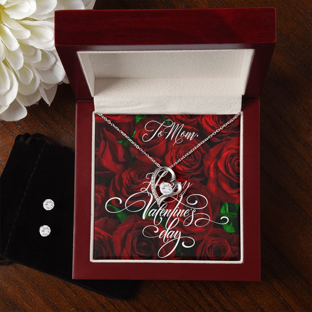 Dark Rose Mom Valentine's Forever Heart Necklace & Cubic Zirconia Earring Set