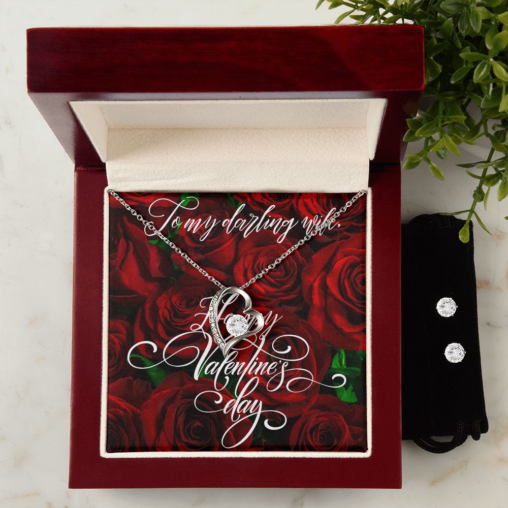 Dark Rose Wife Valentine's Forever Heart Necklace & Cubic Zirconia Earring Set