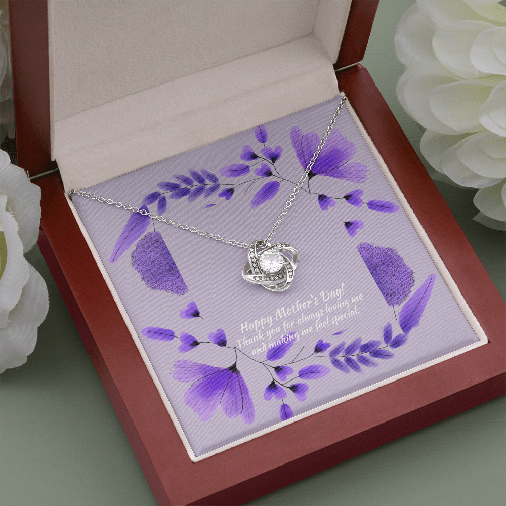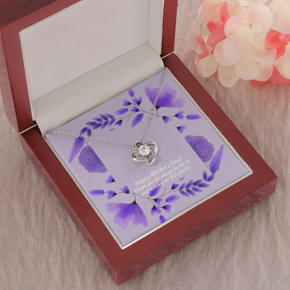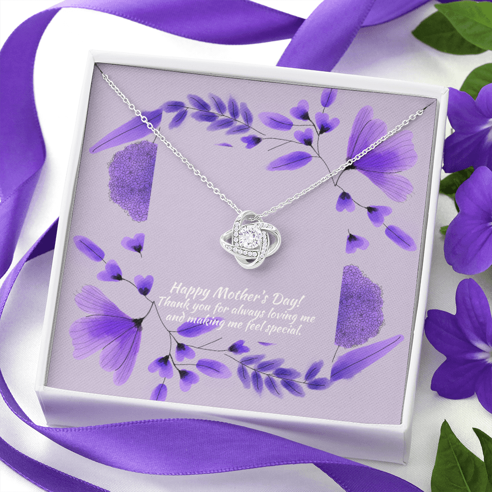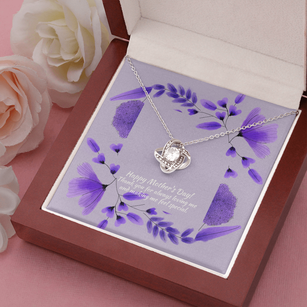 Happy Mother's Day Purple Flowers Love Knot Necklace