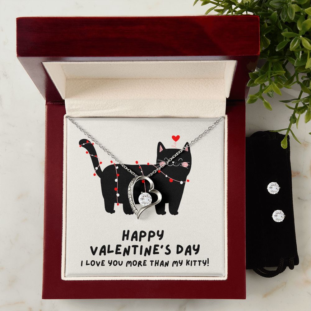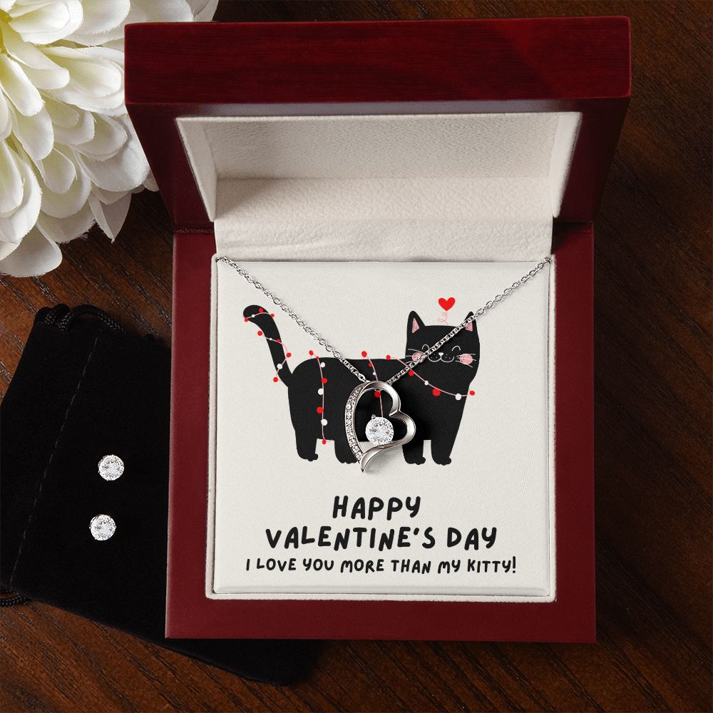 Kitty Heart Valentine's Forever Heart Necklace & Cubic Zirconia Earring Set