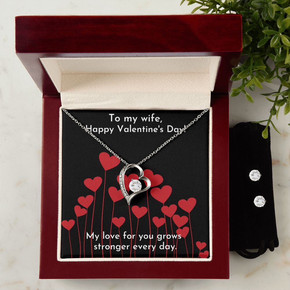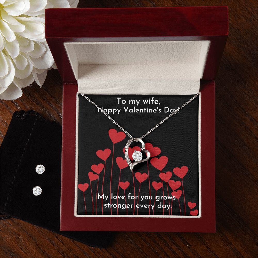 Love Grows Red Valentine's Forever Heart Necklace & Cubic Zirconia Earring Set