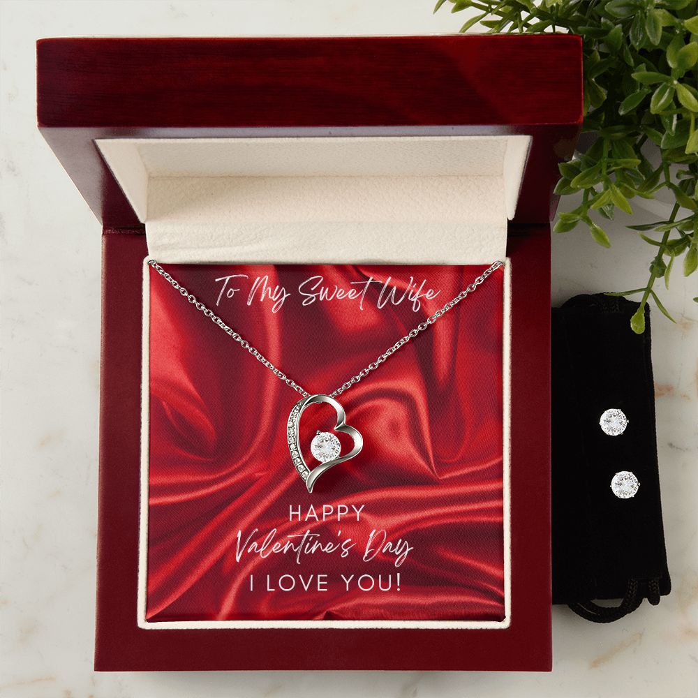Love Wife Valentine's Forever Heart Necklace & Cubic Zirconia Earring Set
