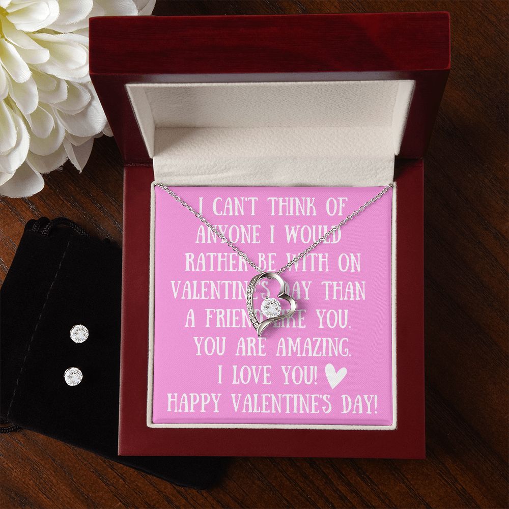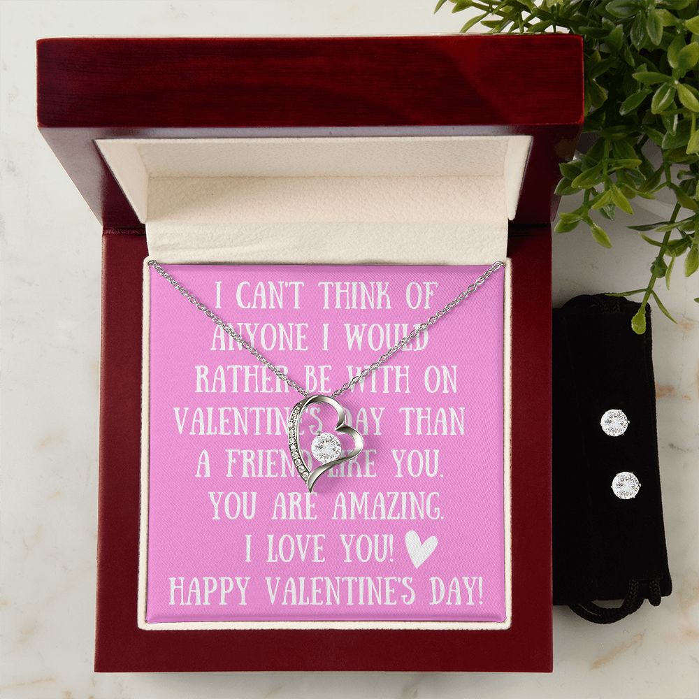 Love You Pink Valentine's Forever Heart Necklace & Cubic Zirconia Earring Set