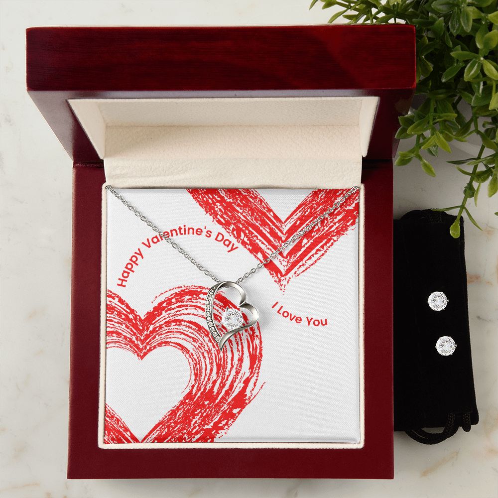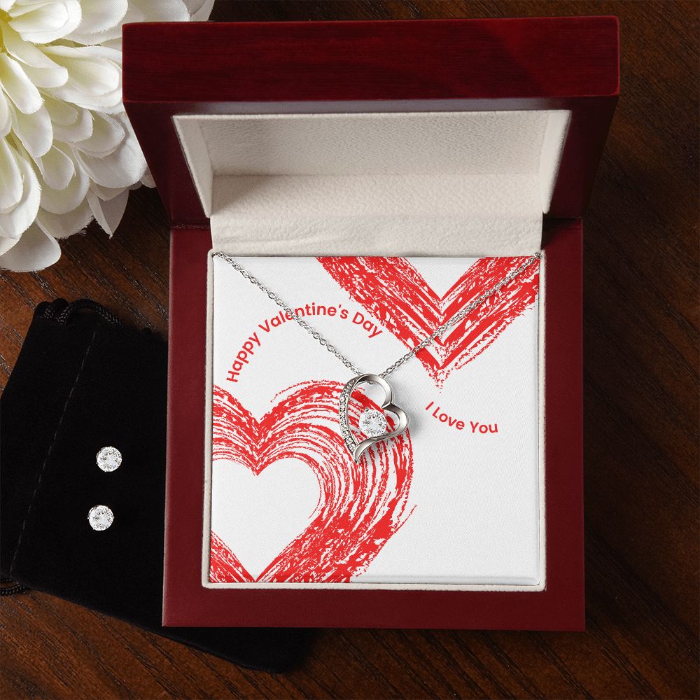 Love You Valentine's Forever Heart Necklace & Cubic Zirconia Earring Set