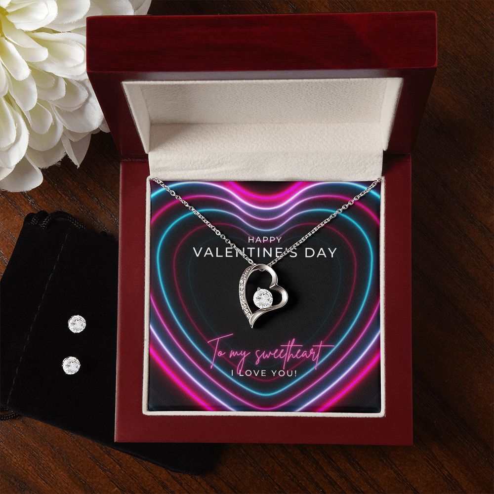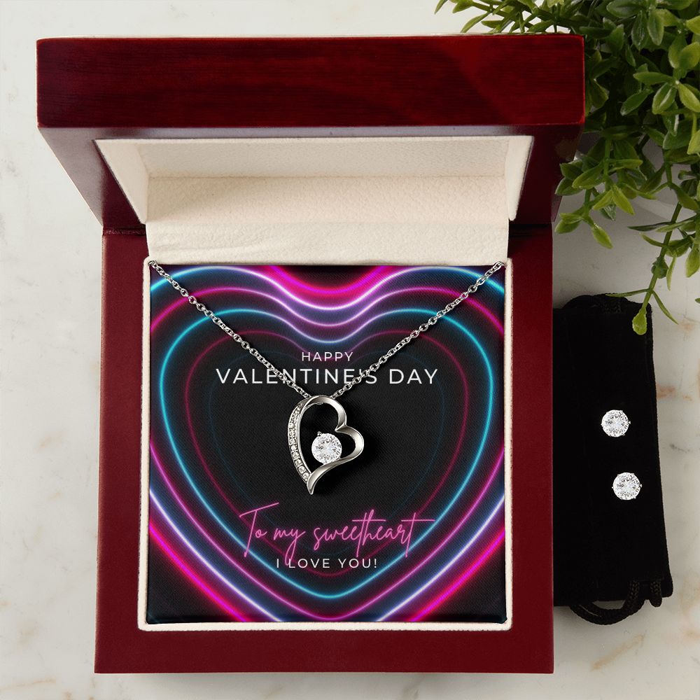 Neon Hearts Sweetheart Valentine's Forever Heart Necklace & Cubic Zirconia Earring Set