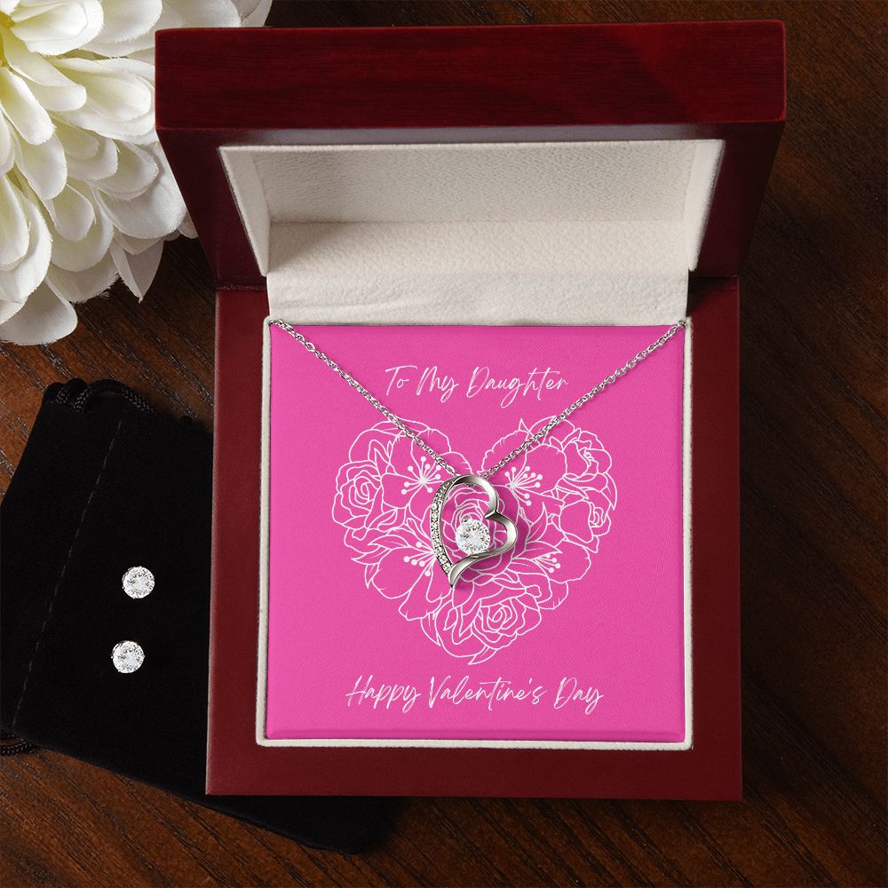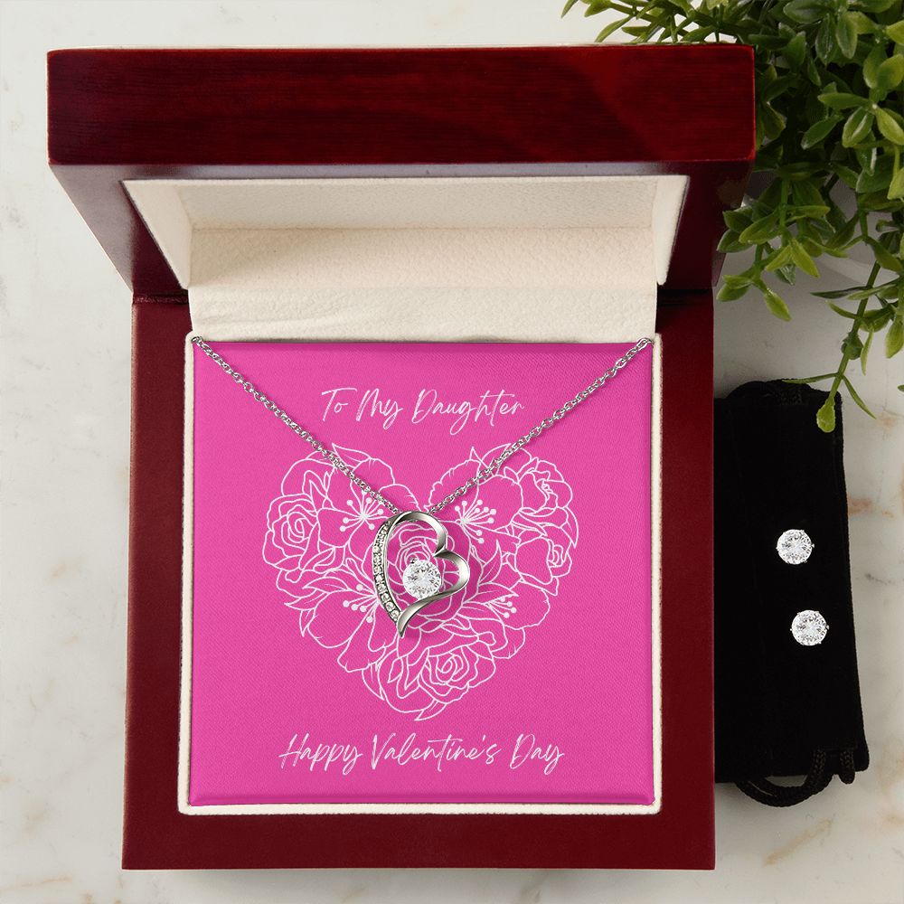 Pink Daughter Valentine's Forever Heart Necklace & Cubic Zirconia Earring Set