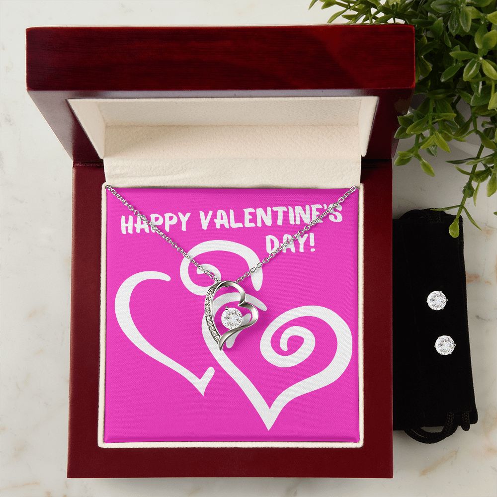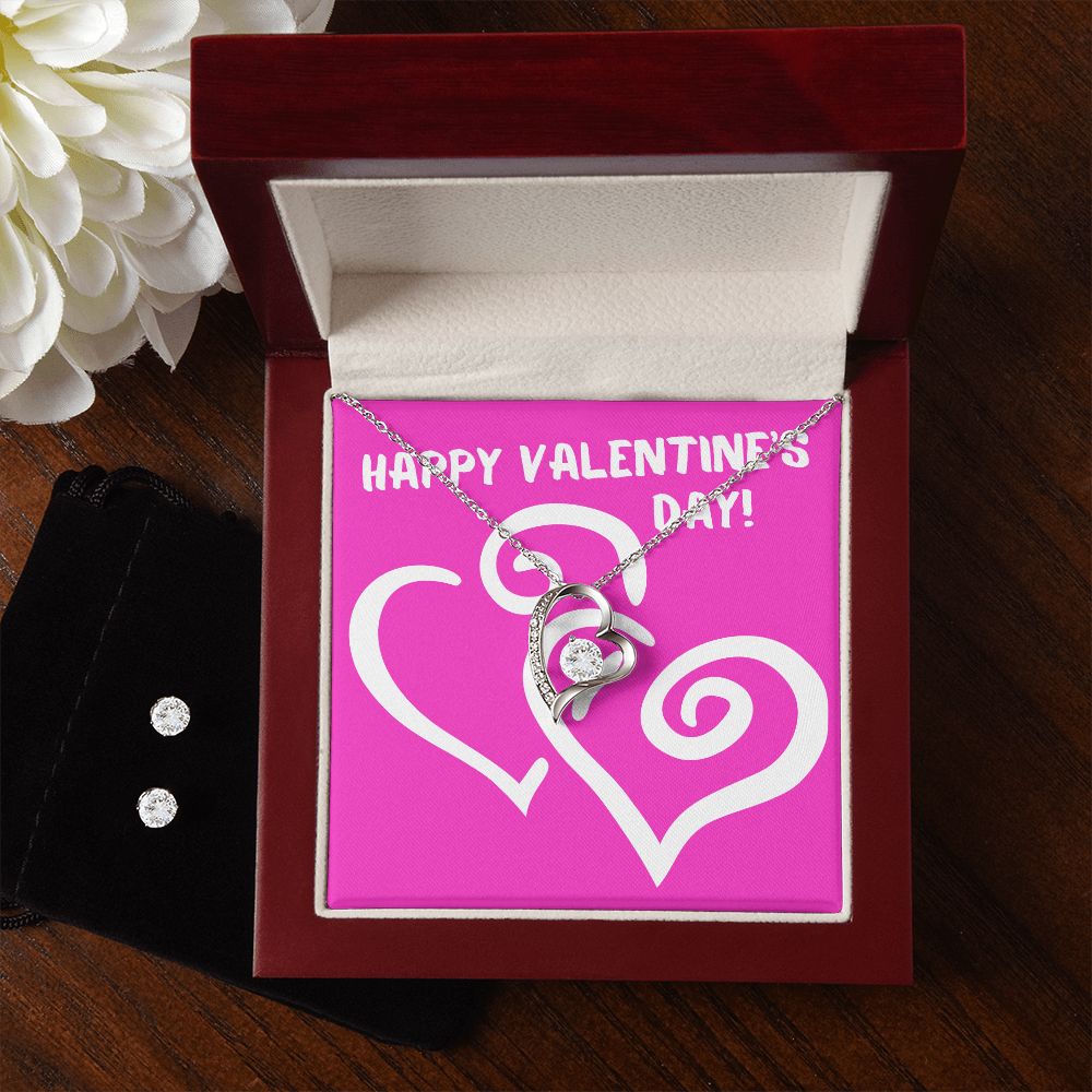 Pink Heart Valentine's Forever Heart Necklace & Cubic Zirconia Earring Set