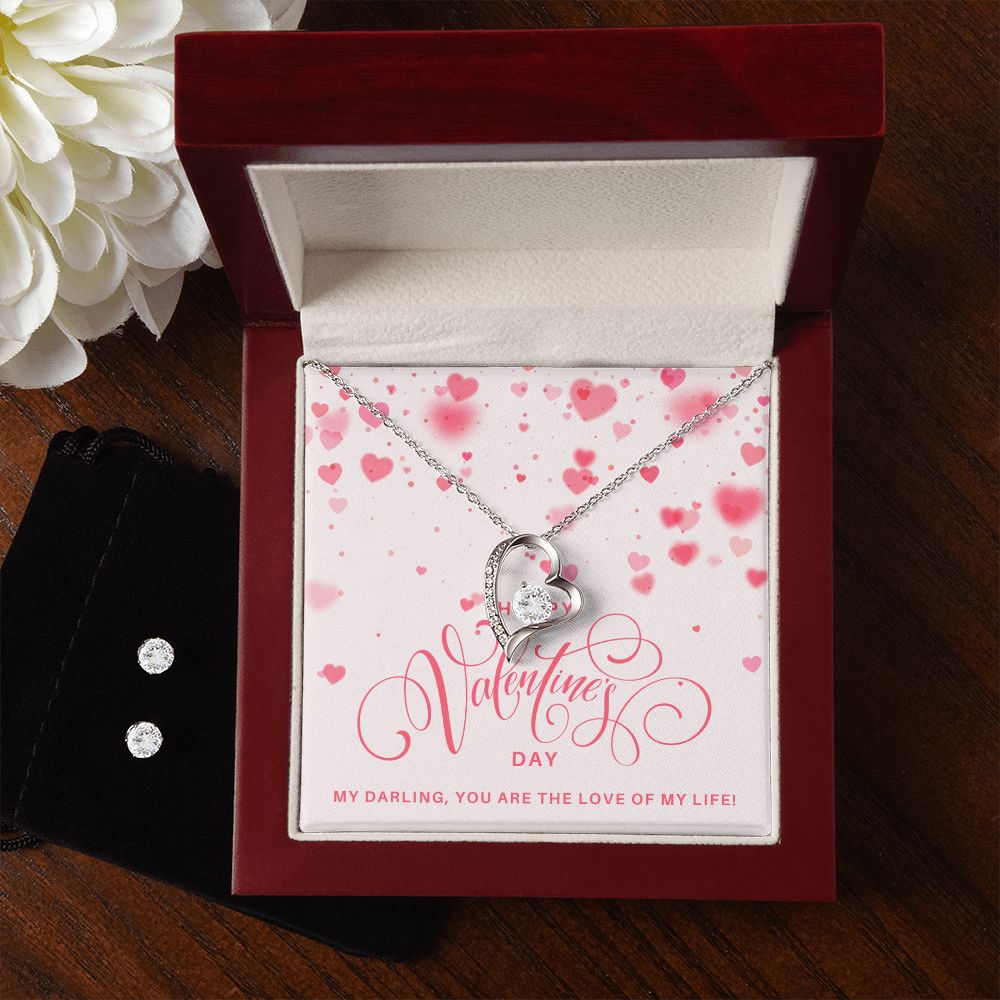 Pink Love of my Life Valentine's Forever Heart Necklace & Cubic Zirconia Earring Set