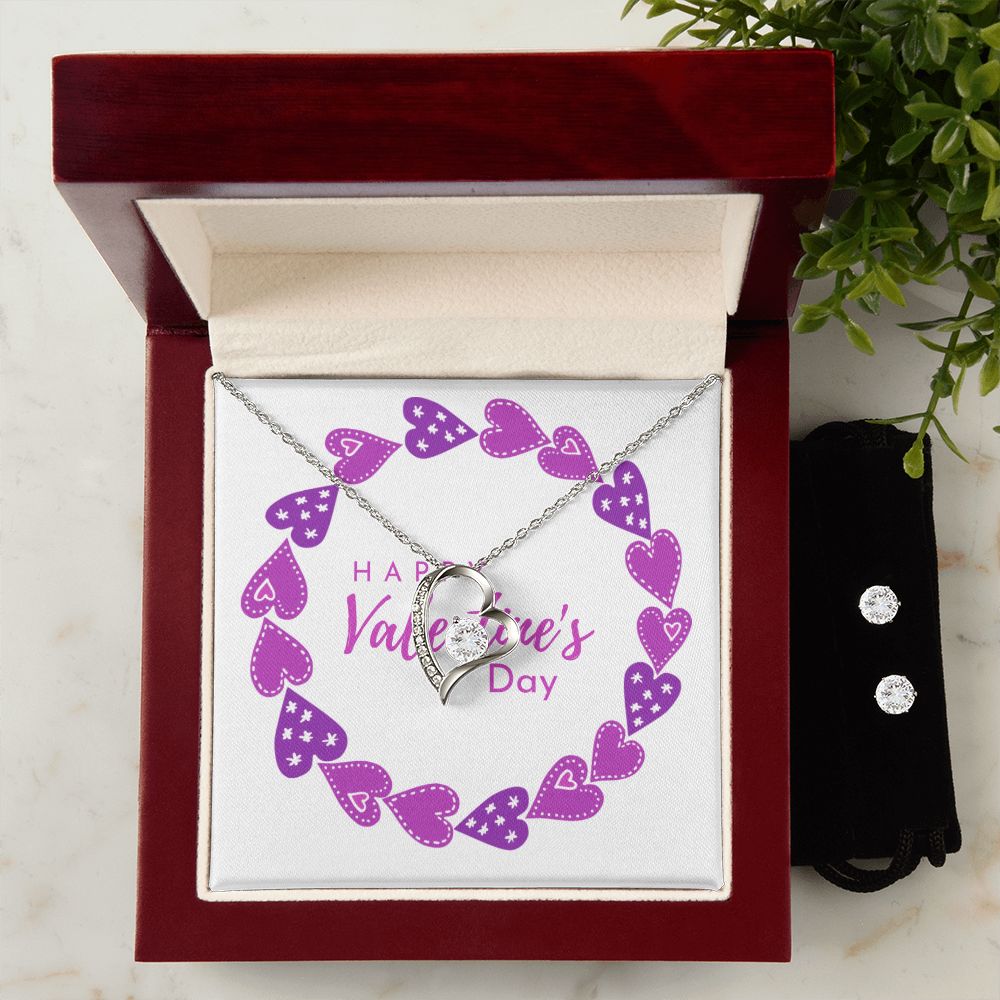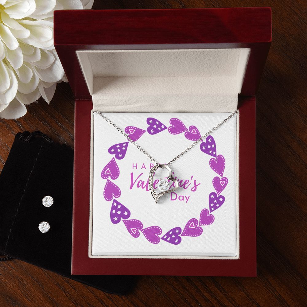 Purple Heart Valentine's Forever Heart Necklace & Cubic Zirconia Earring Set