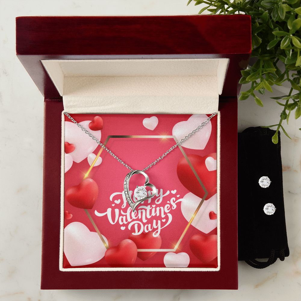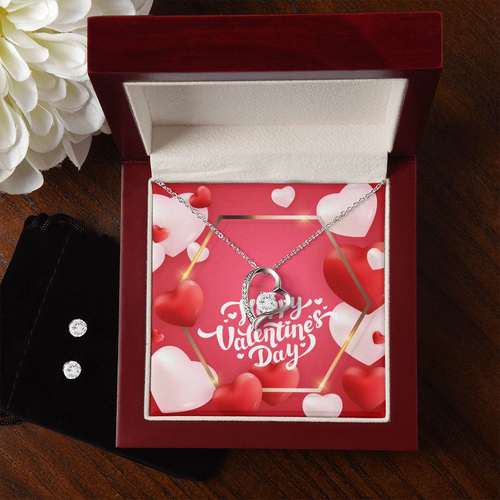Red Hearts Valentine's Forever Heart Necklace & Cubic Zirconia Earring Set