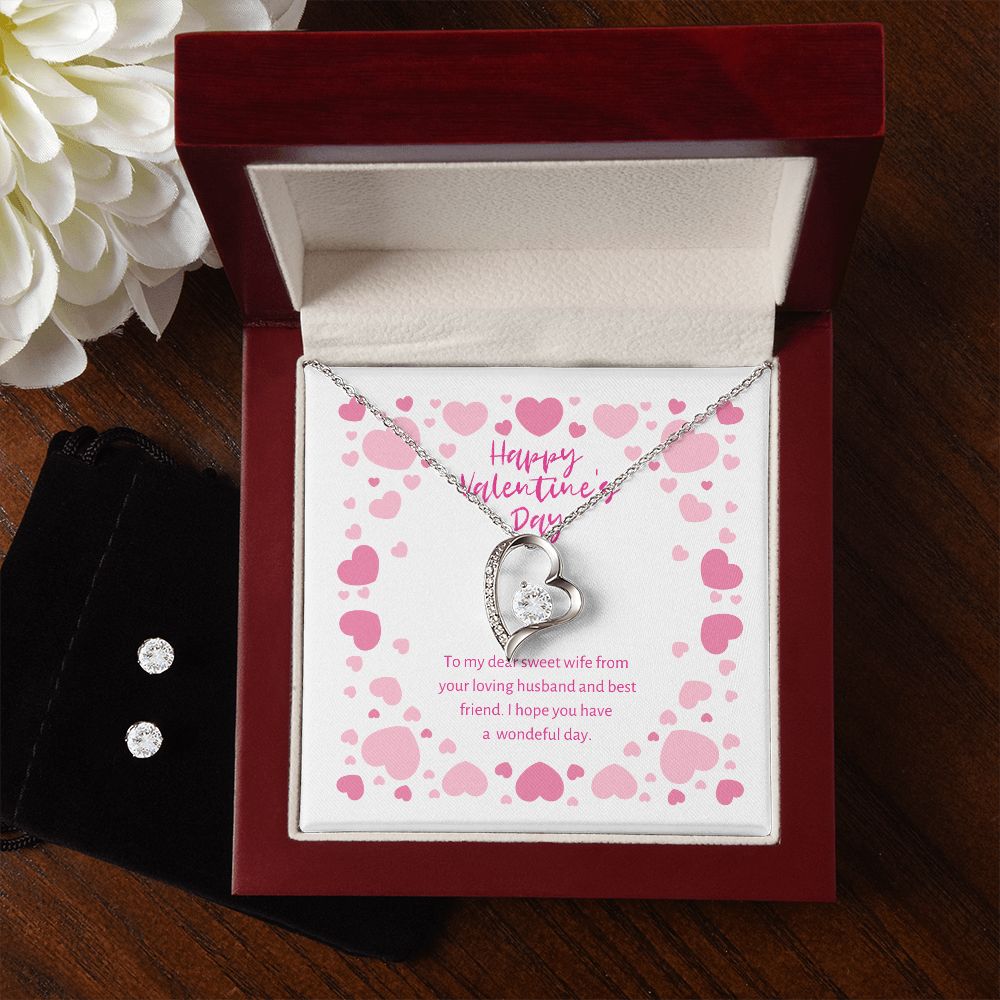 Sweet Wife Valentine's Forever Heart Necklace & Cubic Zirconia Earring Set