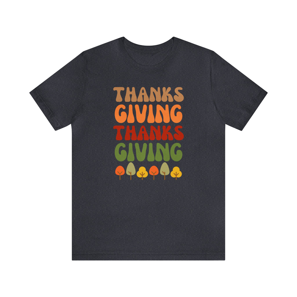 Express your gratitude in style with our Thanks Giving Thanks Giving T-Shirt! This Fall Thanksgiving Tee is a perfect way to celebrate the season of giving thanks and cherishing the blessings in our lives. Crafted from high-quality Bella Canvas 3001 Unisex fabric, this T-shirt ensures both comfort and style, making it an ideal choice for embracing the coziness of fall. Whether you're gathering with loved ones or enjoying a Thanksgiving feast, our Happy Thanksgiving Short Sleeve Tshirt will keep you feeling comfortable and chic. Celebrate the essence of Thanksgiving and the joy of giving thanks with this Thanks Giving Thanks Giving T-Shirt | Fall Thanksgiving Tee. It's a wonderful addition to your fall wardrobe, adding a touch of gratitude-inspired charm to your everyday outfits. Show off your appreciation for the season and the spirit of giving with this delightful T-shirt. It's also a thoughtful and stylish gift for friends and family, capturing the warmth and joy of this special time of year. Order now and wear the essence of Thanksgiving with pride and joy. Add this charming and cozy T-shirt to your cart and let the world know that you're ready to celebrate Thanks Giving with a grateful heart! * 100% Airlume combed and ringspun cotton (fiber content may vary for different colors) * Light fabric (4.2 oz/yd² (142 g/m²)) * Retail fit * Tear away label * Runs true to size