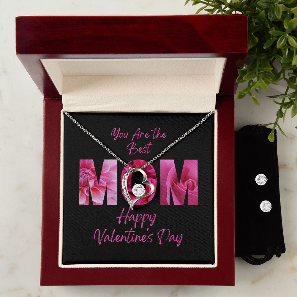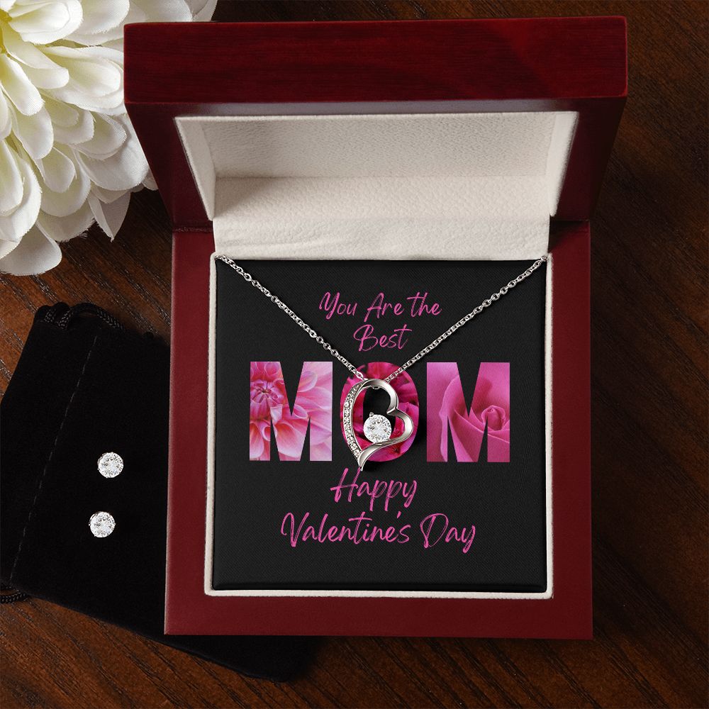 The Best Mom Valentine's Forever Heart Necklace & Cubic Zirconia Earring Set