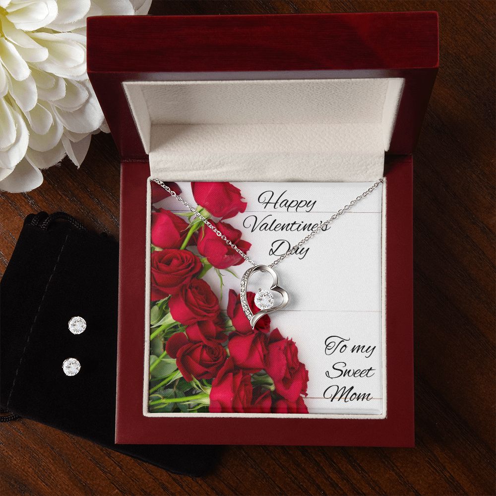 To Mom Valentine's Forever Heart Necklace & Cubic Zirconia Earring Set