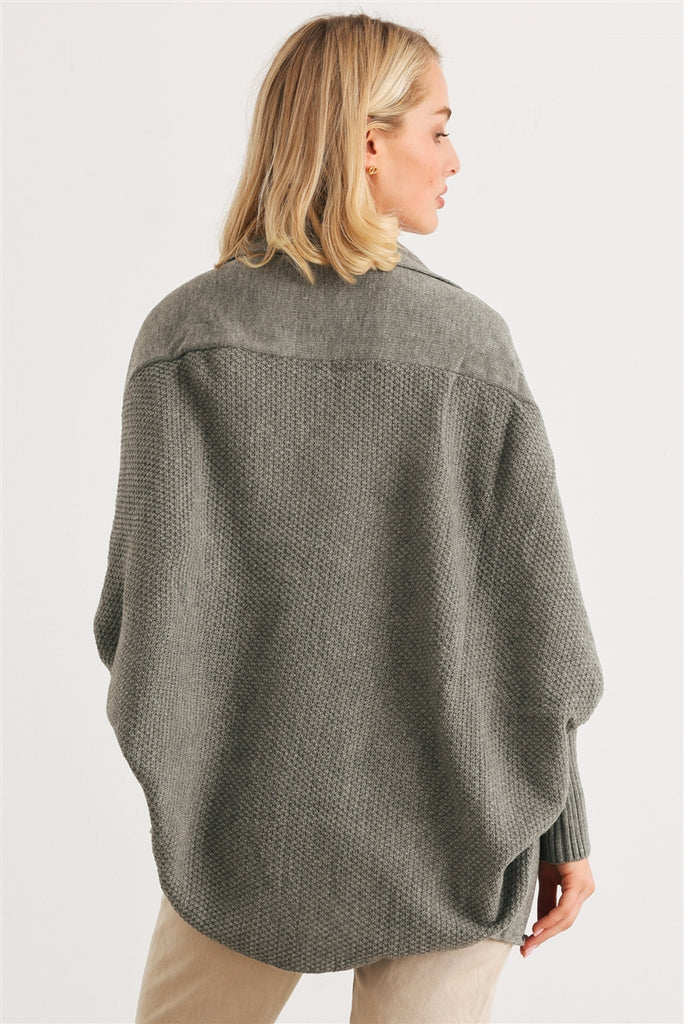 Batwing Cardigan Heather Charcoal Sleeve Open Front