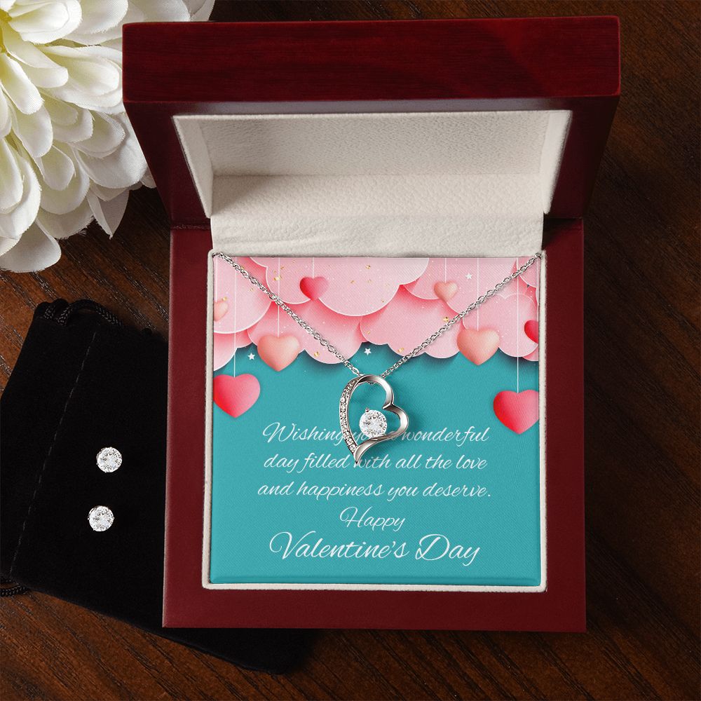 Give your loved one a gift that will make their heart swell! The Forever Love Necklace and Cubic Zirconia Earring Set is sure to do the trick. This necklace and earring pairing provides dazzling sparkle when worn together or separately, and is perfect for any occasion! Do not miss out on this special offering!