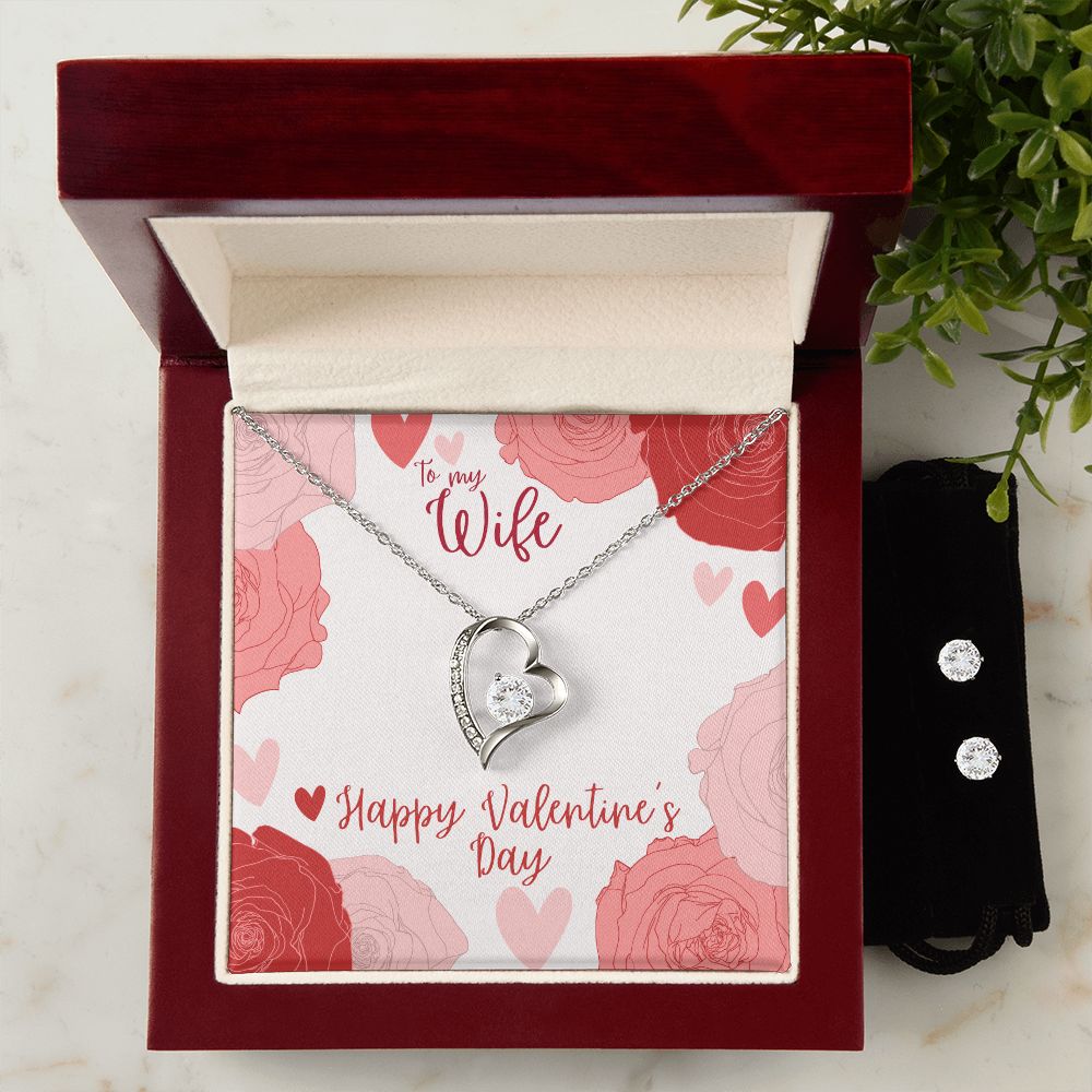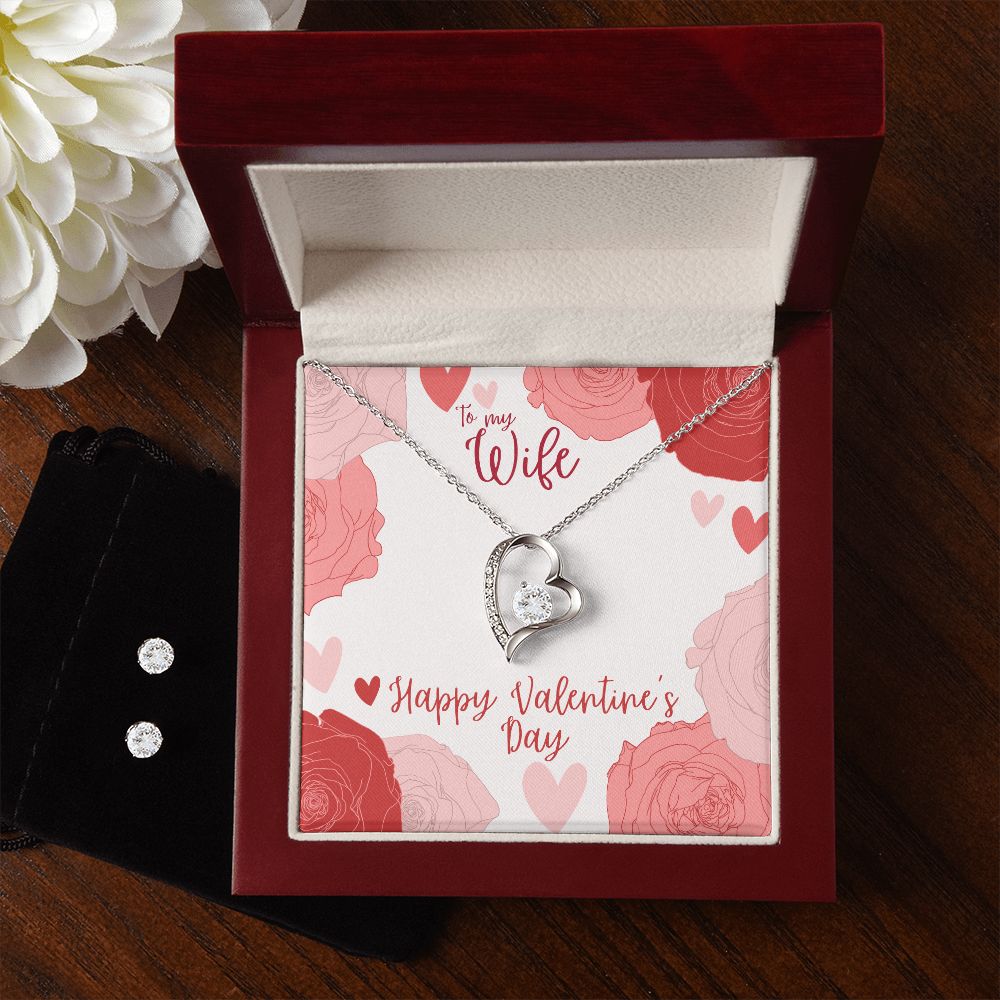 Wife Valentine's Valentine's Forever Heart Necklace & Cubic Zirconia Earring Set