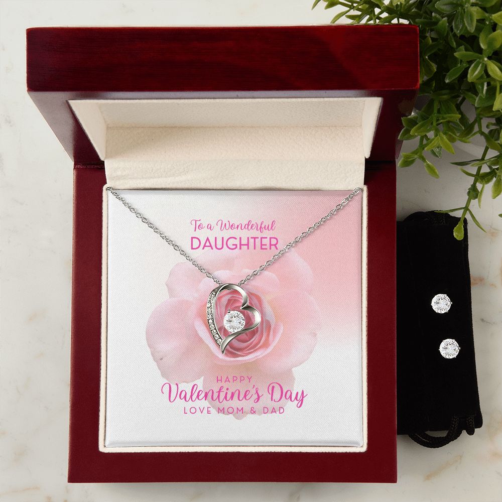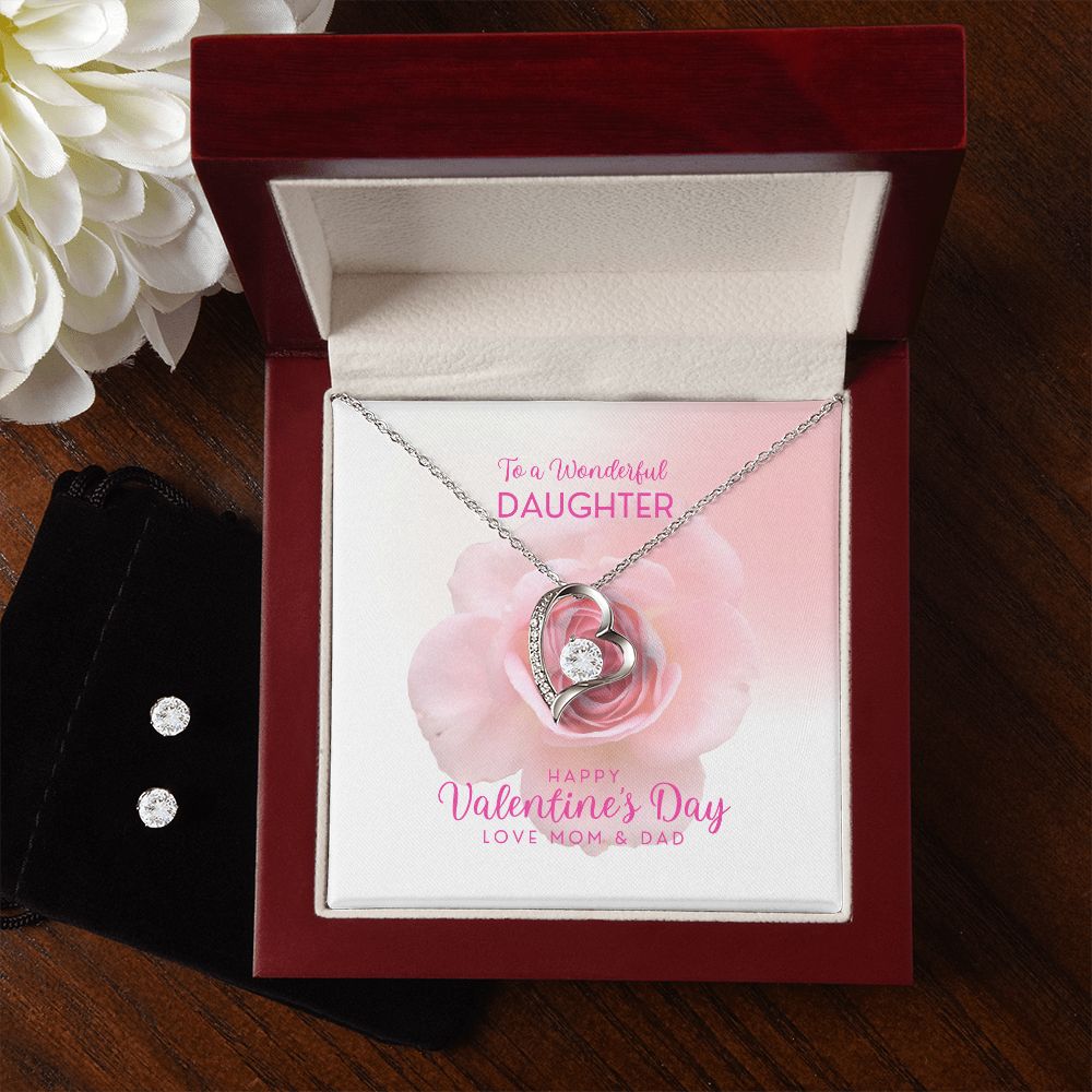 Wonderful Daughter Valentine's Forever Heart Necklace & Cubic Zirconia Earring Set