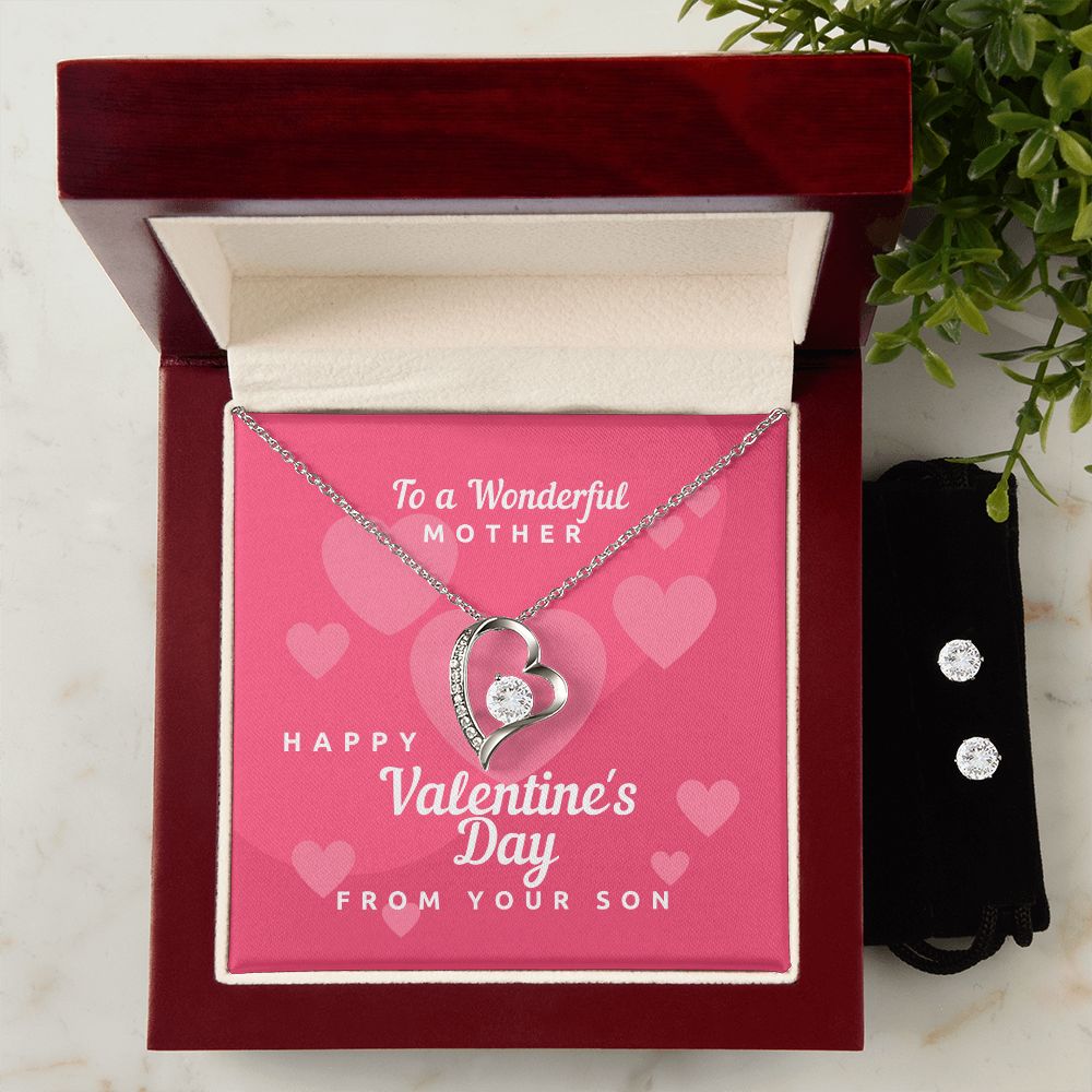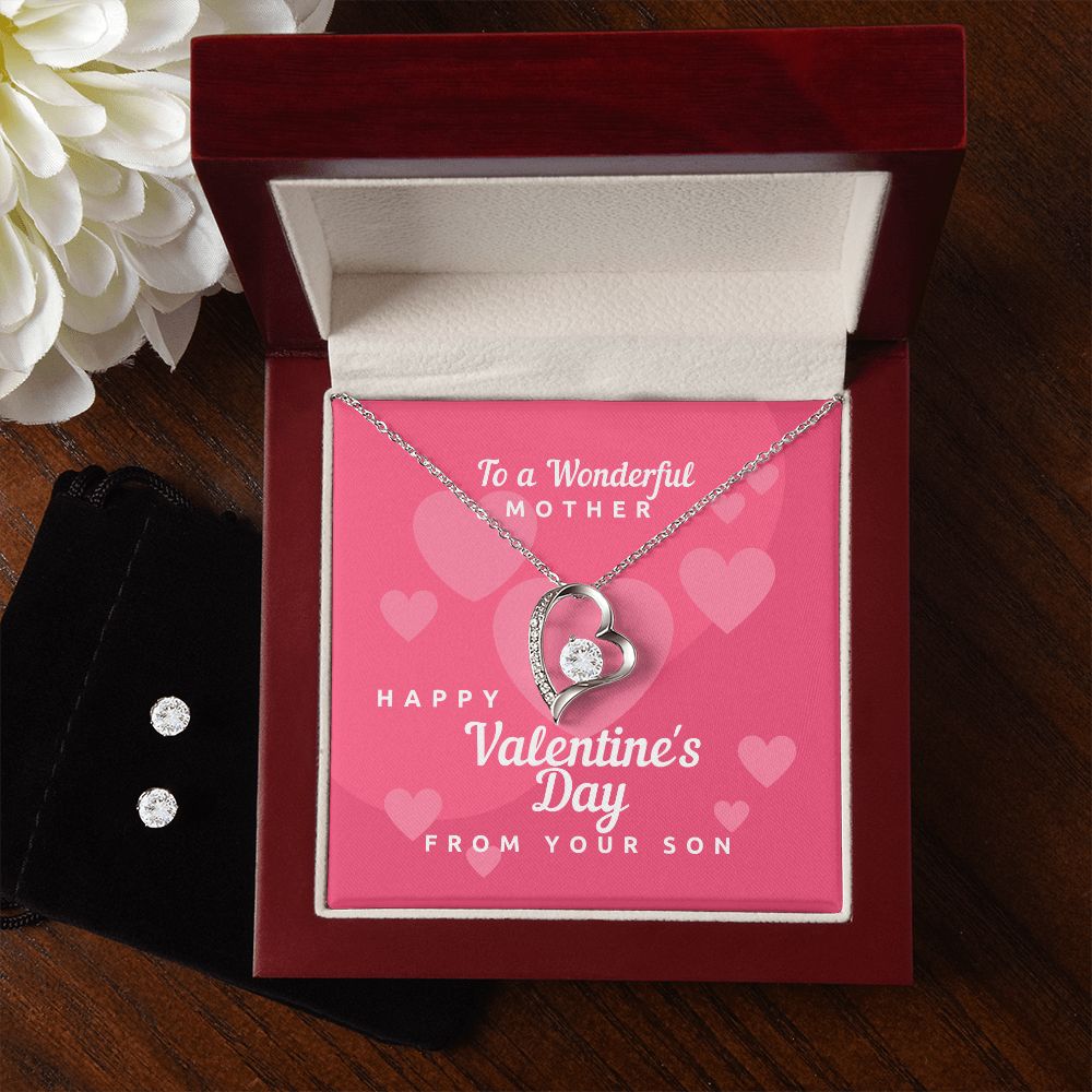 Wonderful Mother Valentine's Forever Heart Necklace & Cubic Zirconia Earring Set