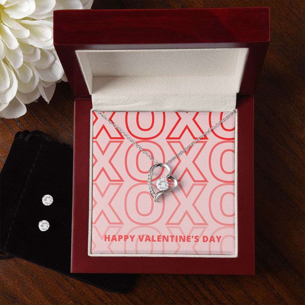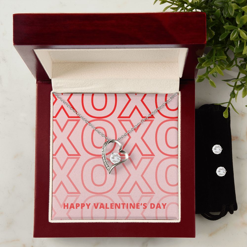 XOXO Pink Valentine's Forever Heart Necklace & Cubic Zirconia Earring Set