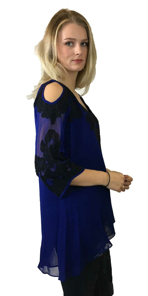 Vintage Collection Women's Romance Cold Shoulder Tunic Royal Blue