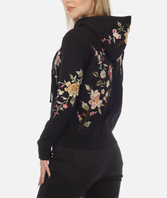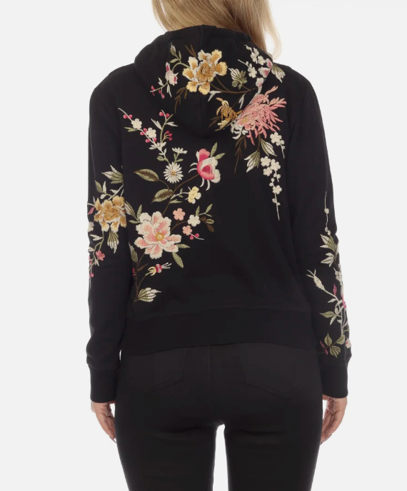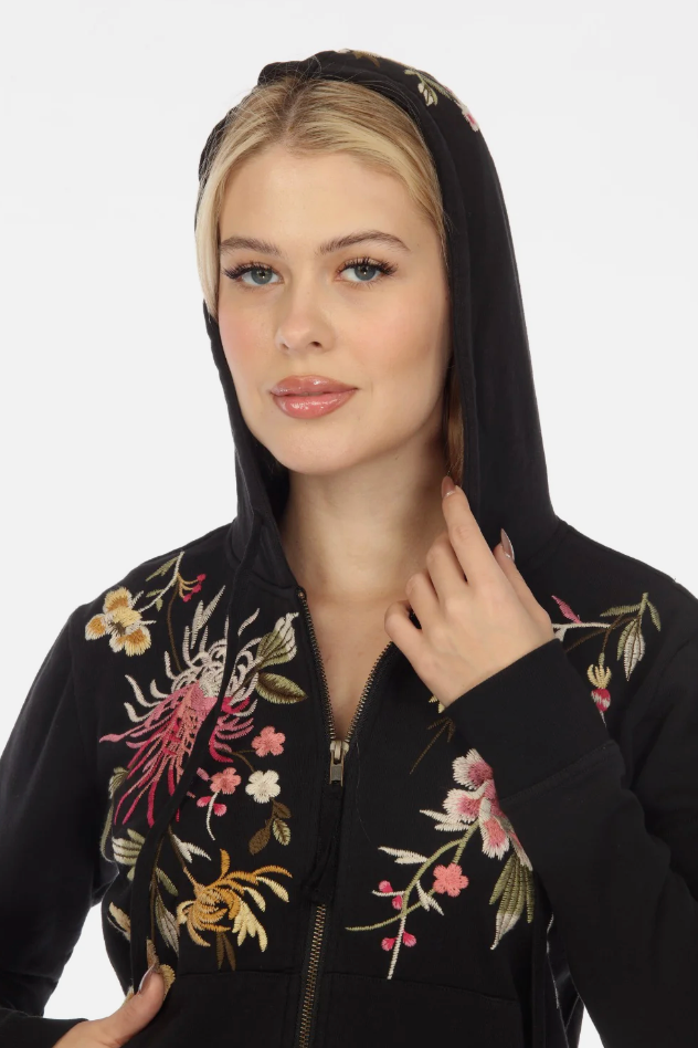 Johnny Was JWLA Black Mei Hooded Zip-Up Sweatshirt Boho Chic J15322 NEW