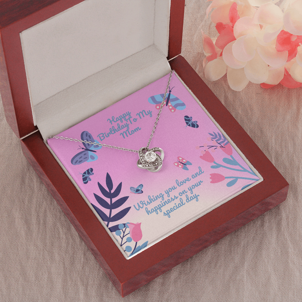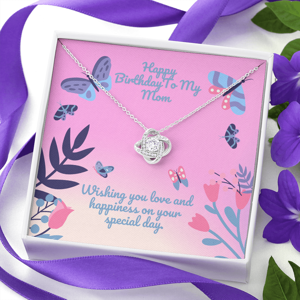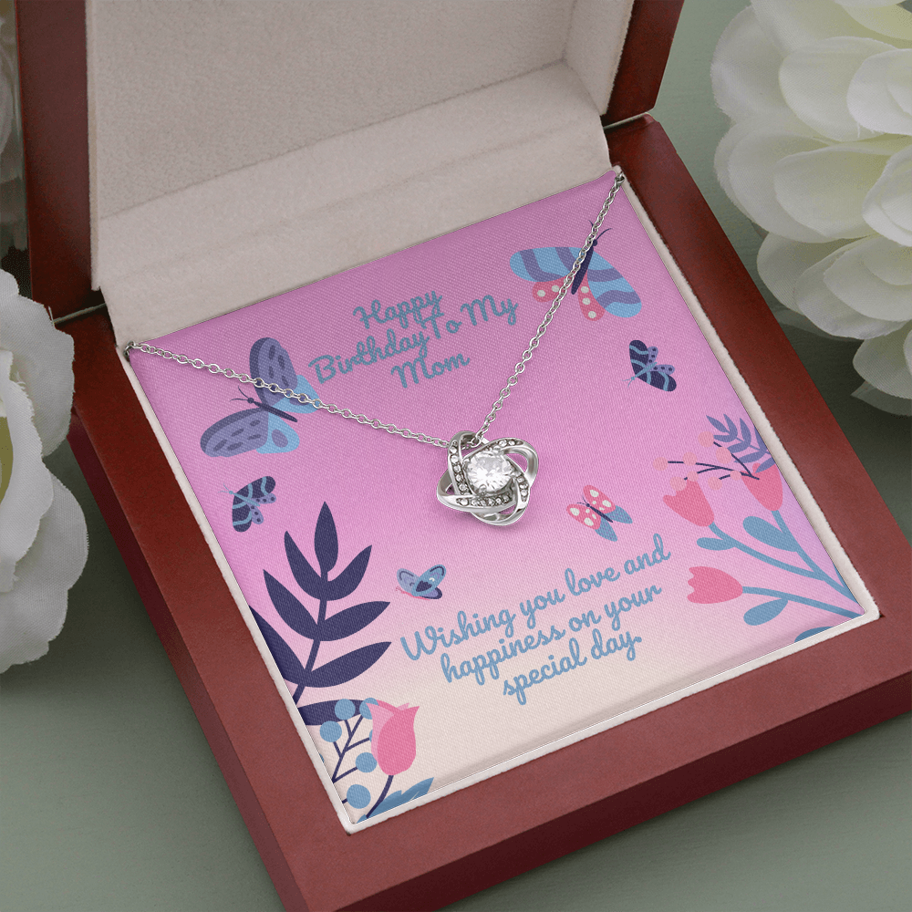 Happy Birthday Butterfly Flower Love Knot Necklace