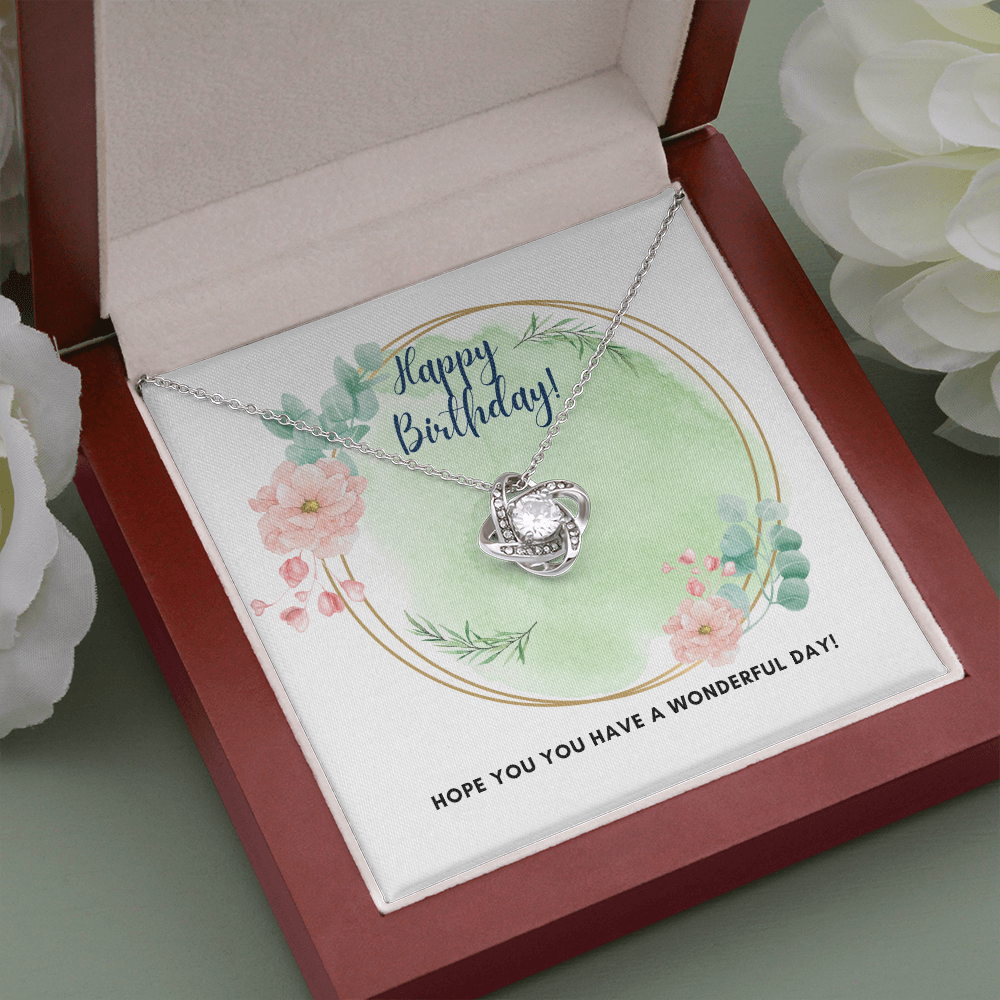 Happy Birthday on Your Wonderful Day Love Knot Necklace
