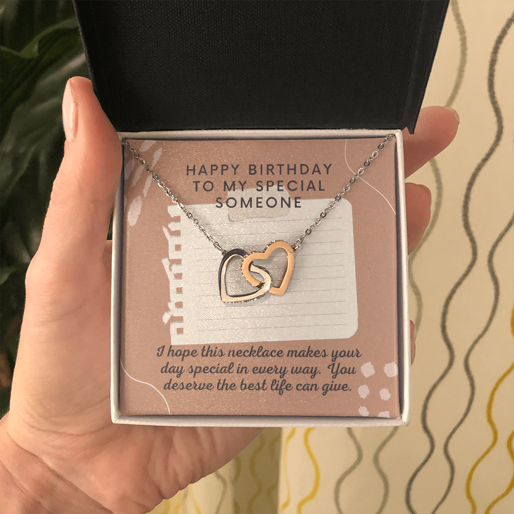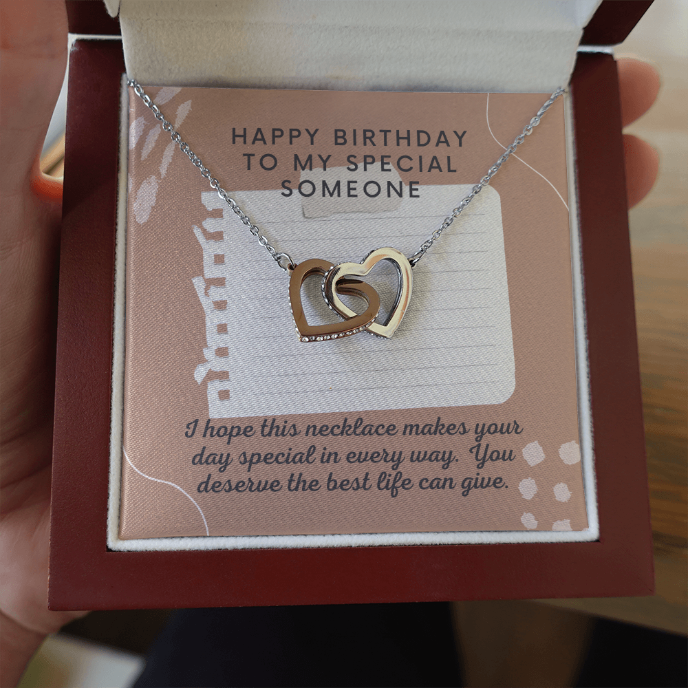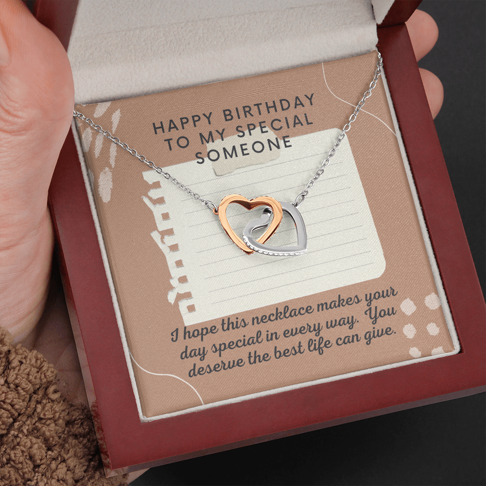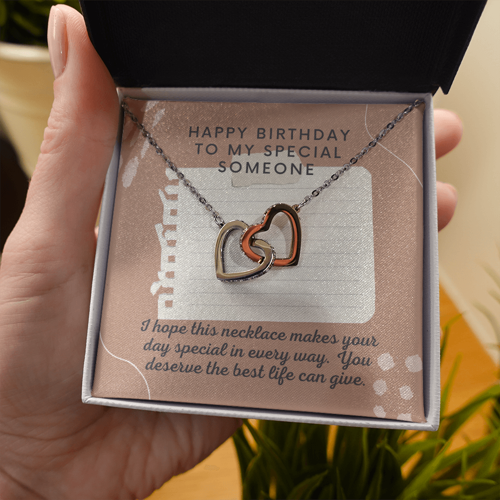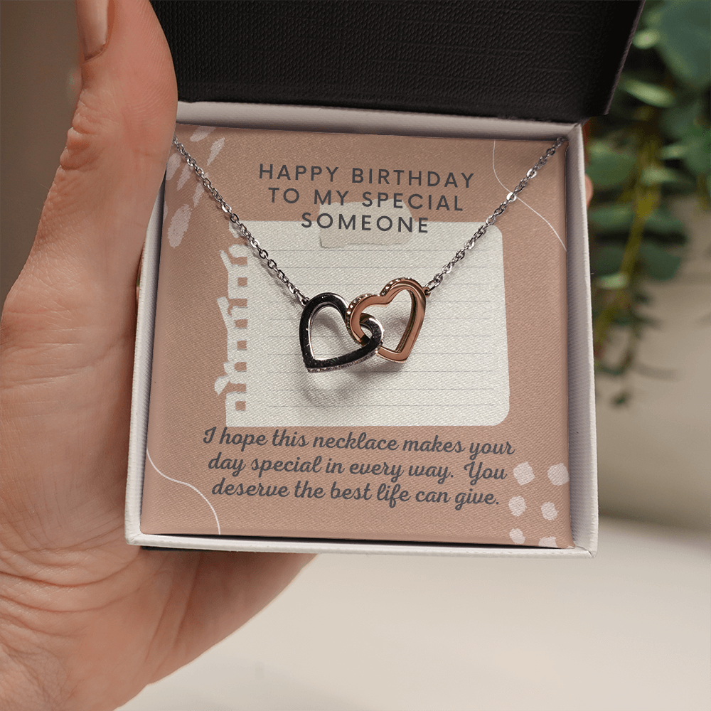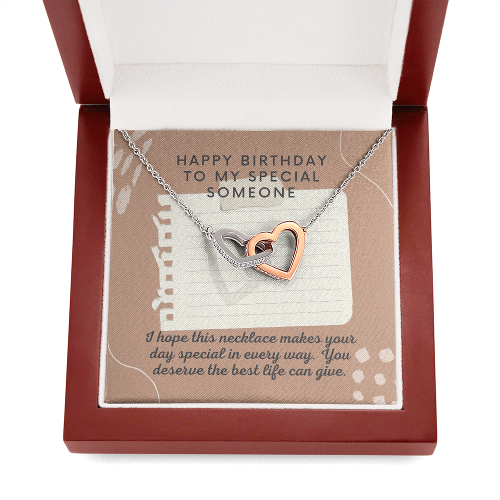 Happy Birthday to Special Someone Interlocking Heart Necklace