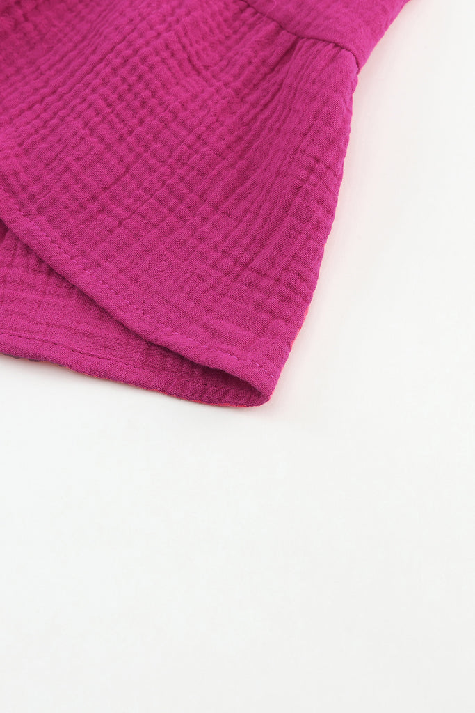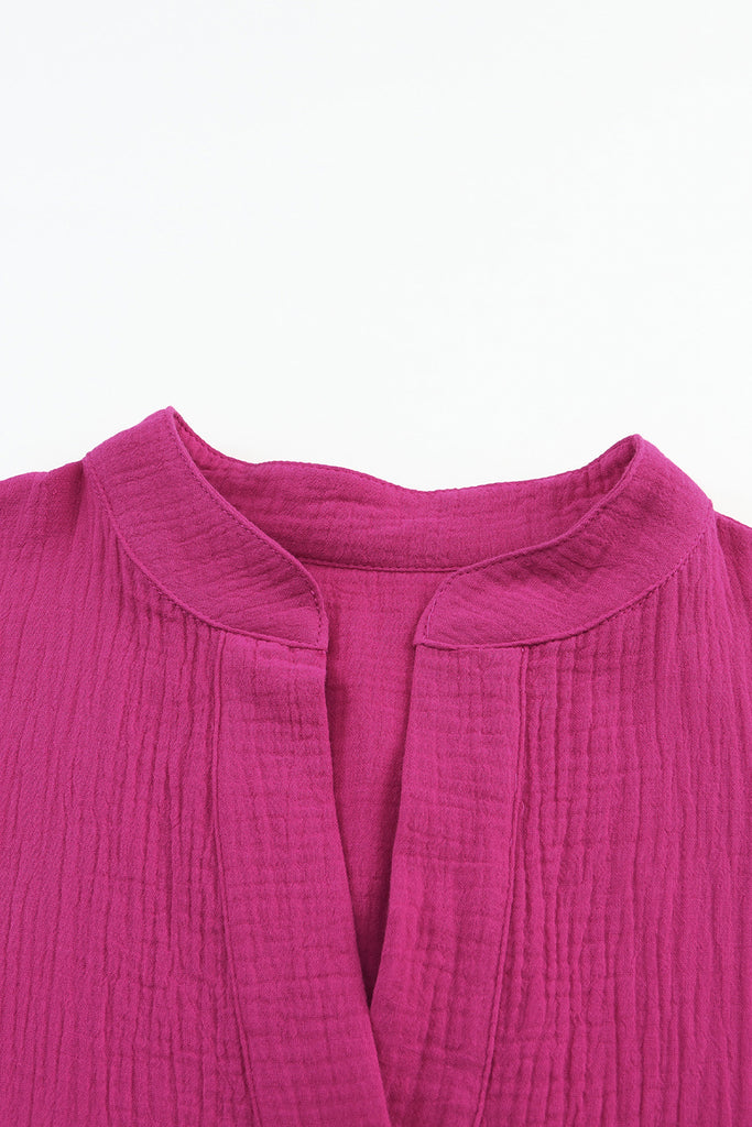 Rose Crinkled Tiered Split Neck Shirt Dress