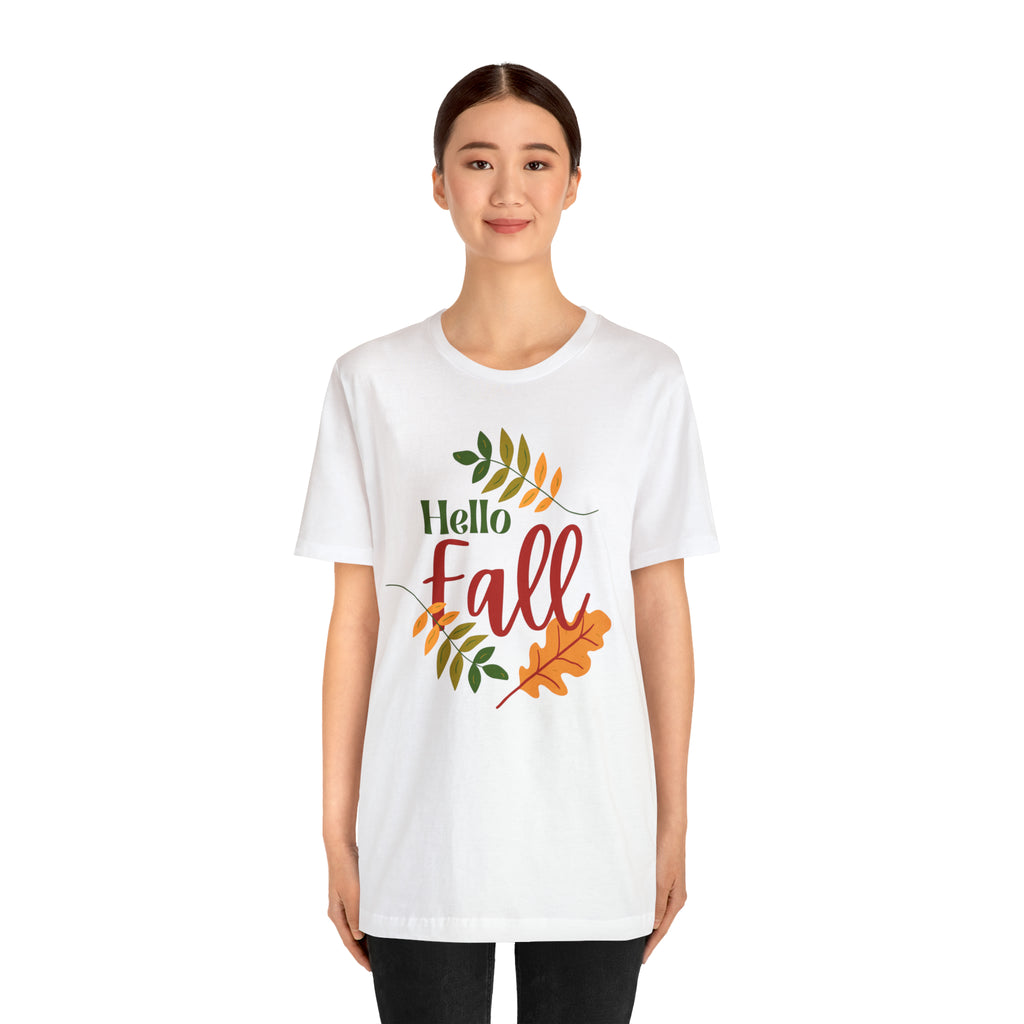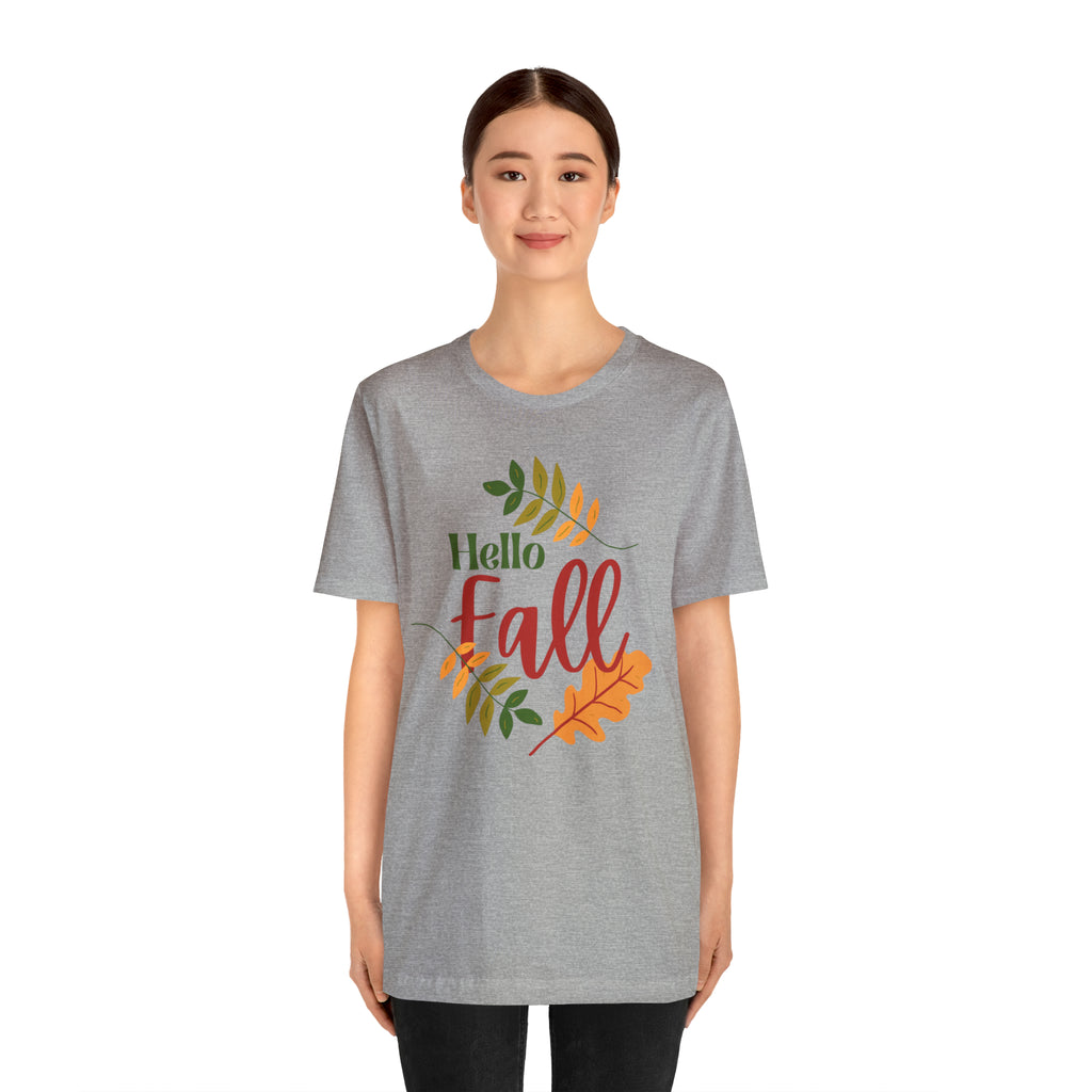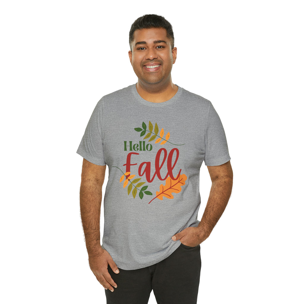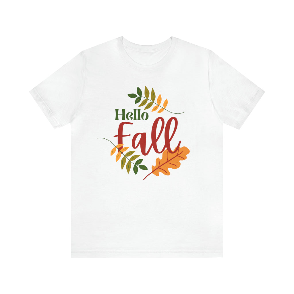 Embrace the beauty of autumn with our Hello Fall T-Shirt! This Fall Leaves Tee welcomes the season of change and gratitude, perfect for celebrating the essence of fall.