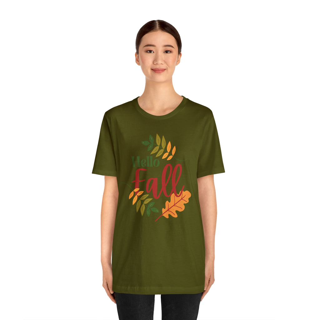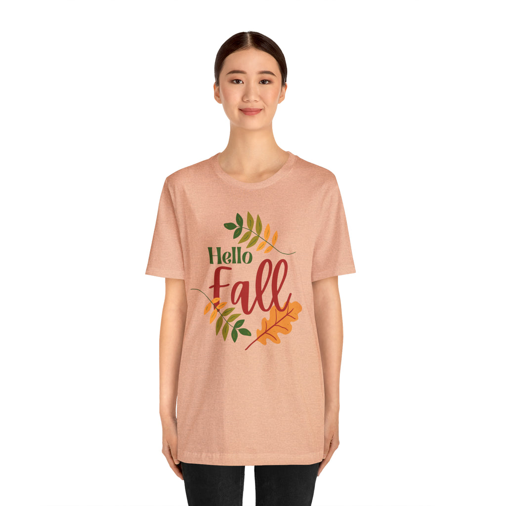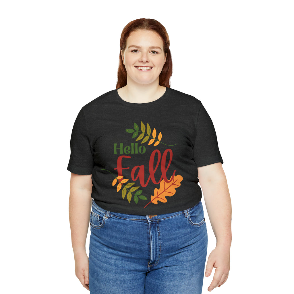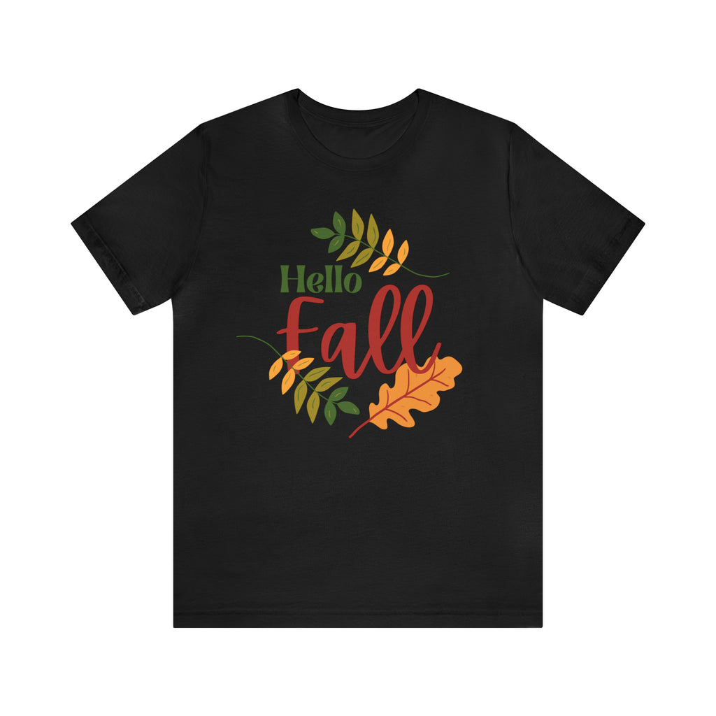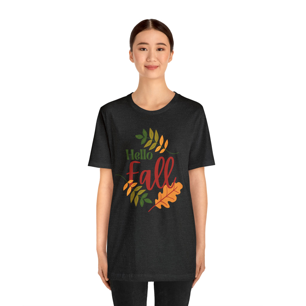 Embrace the beauty of autumn with our Hello Fall T-Shirt! This Fall Leaves Tee welcomes the season of change and gratitude, perfect for celebrating the essence of fall.
