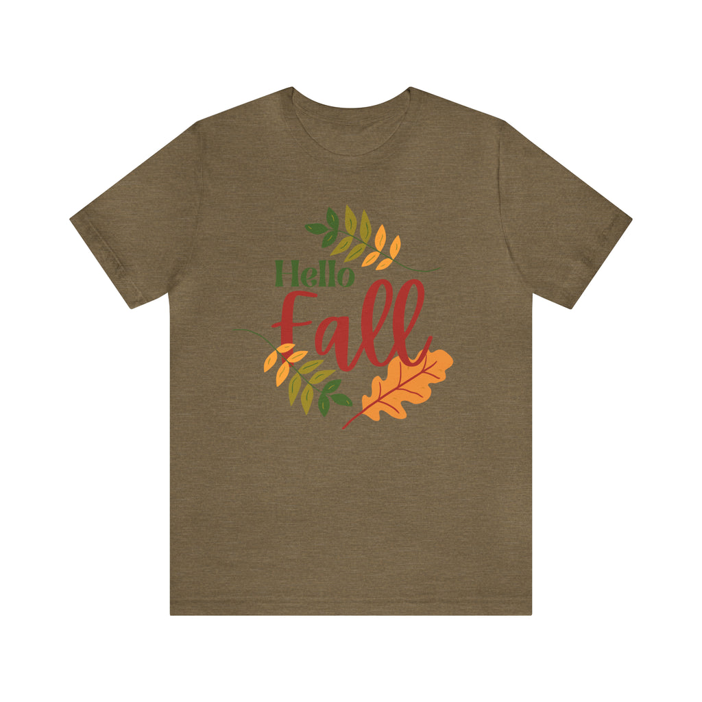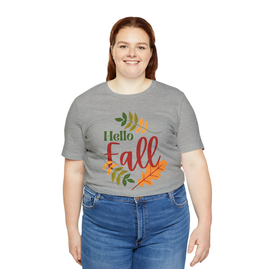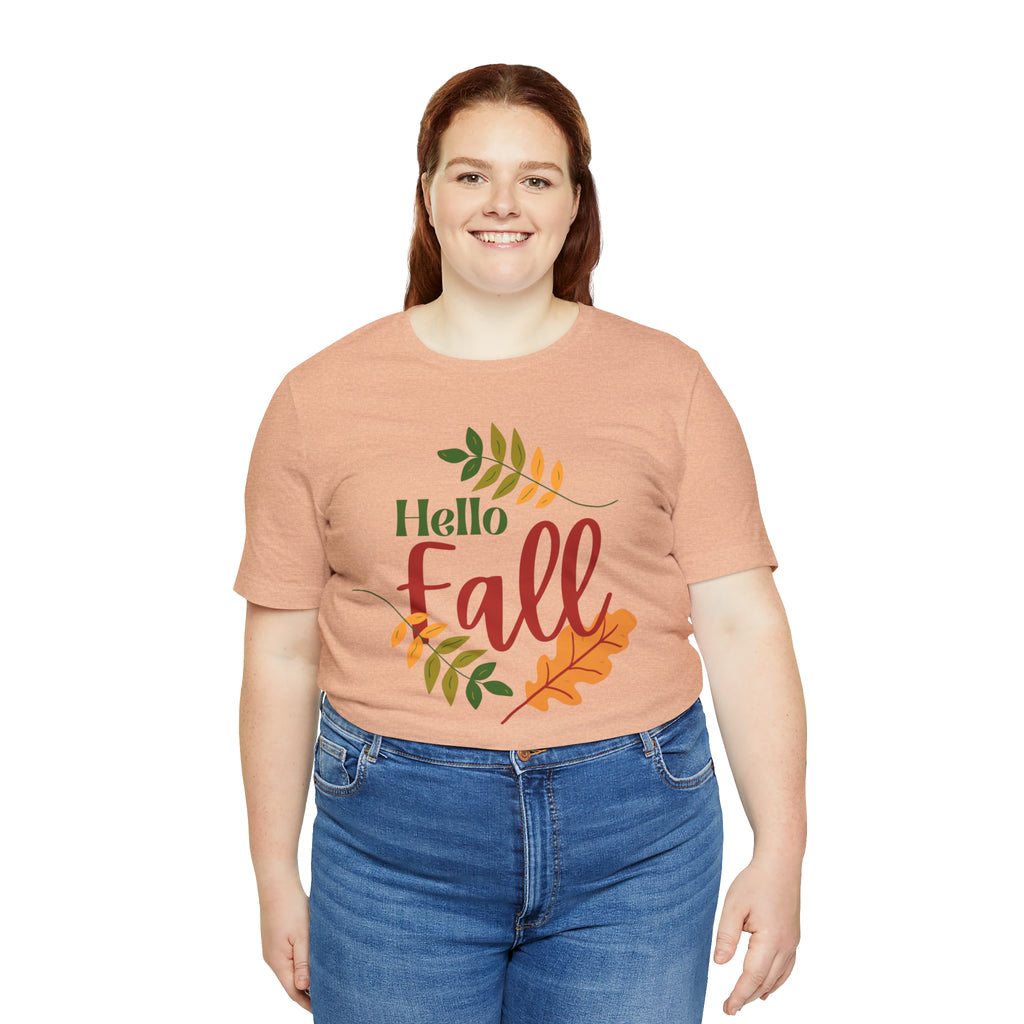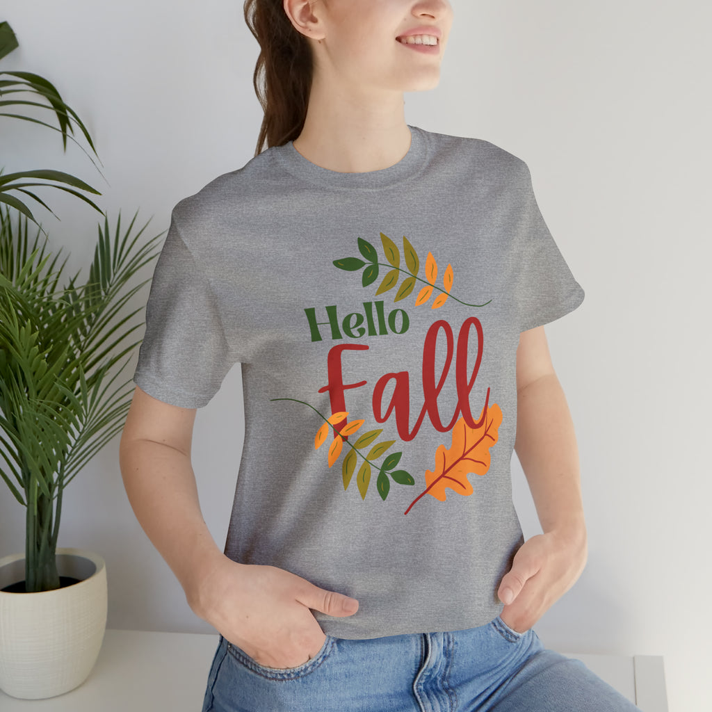 Hello Fall T-Shirt | Fall Leaves Tee | Bella Canvas 3001 Unisex | Thanksgiving Season Short Sleeve Tshirt