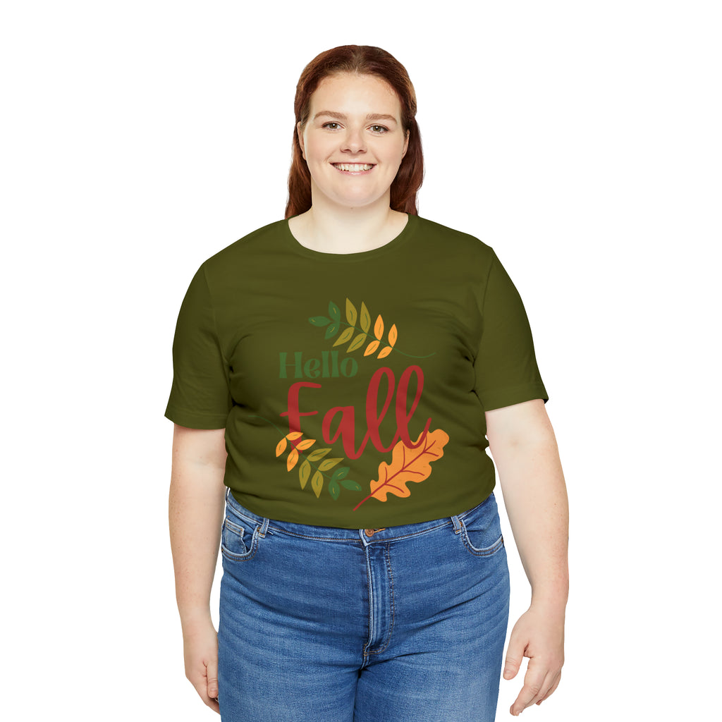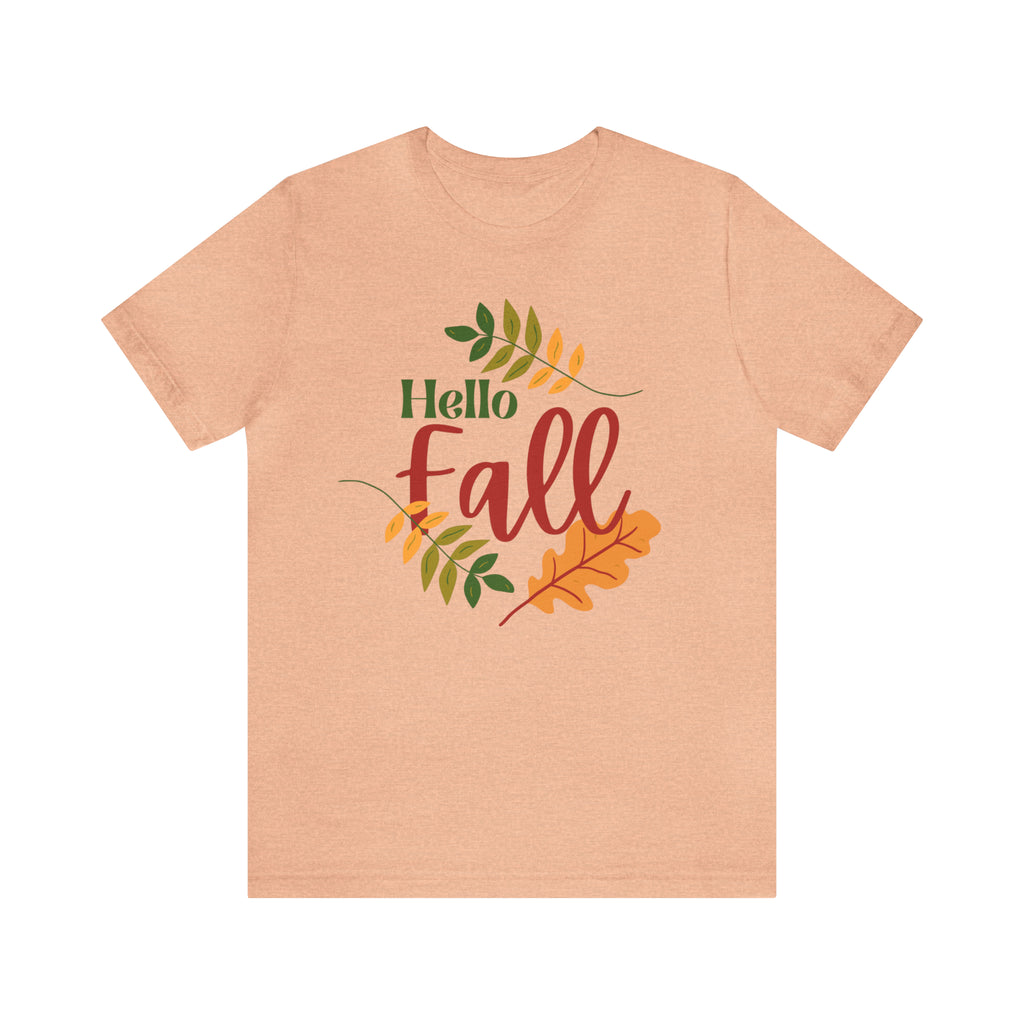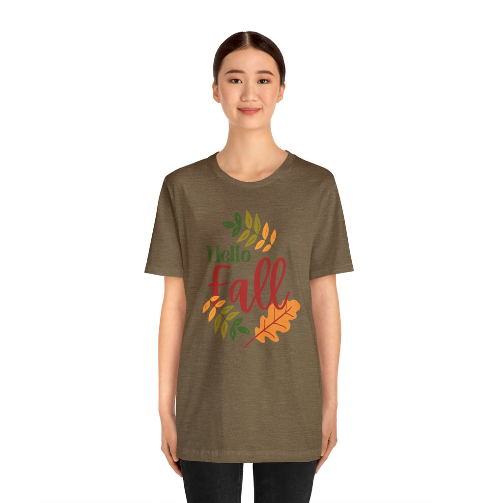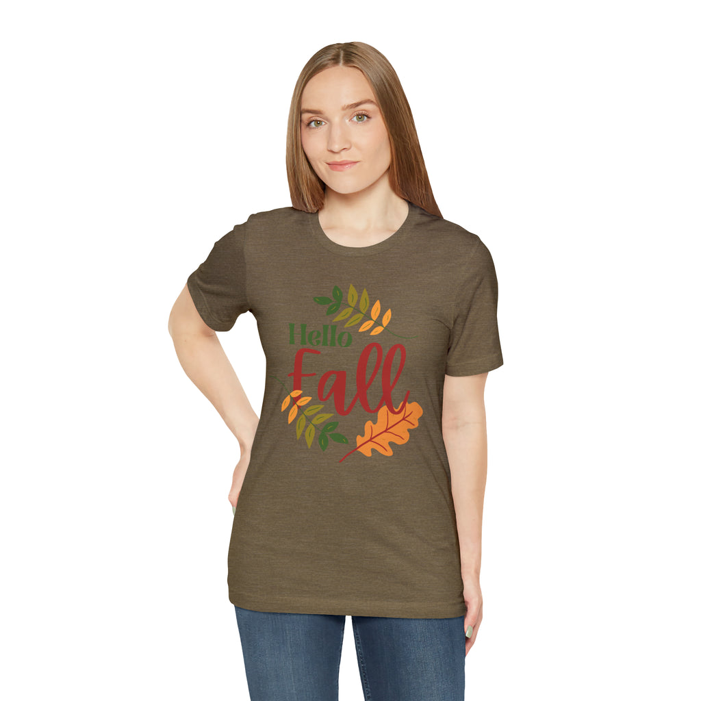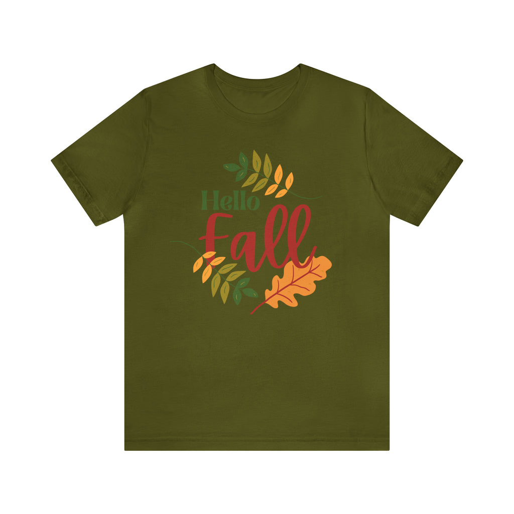 Hello Fall T-Shirt | Fall Leaves Tee | Bella Canvas 3001 Unisex | Thanksgiving Season Short Sleeve Tshirt