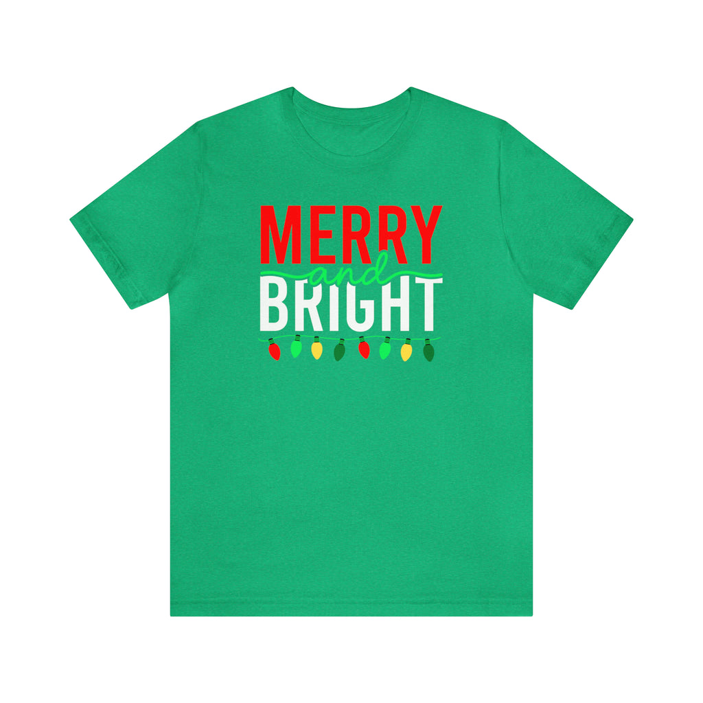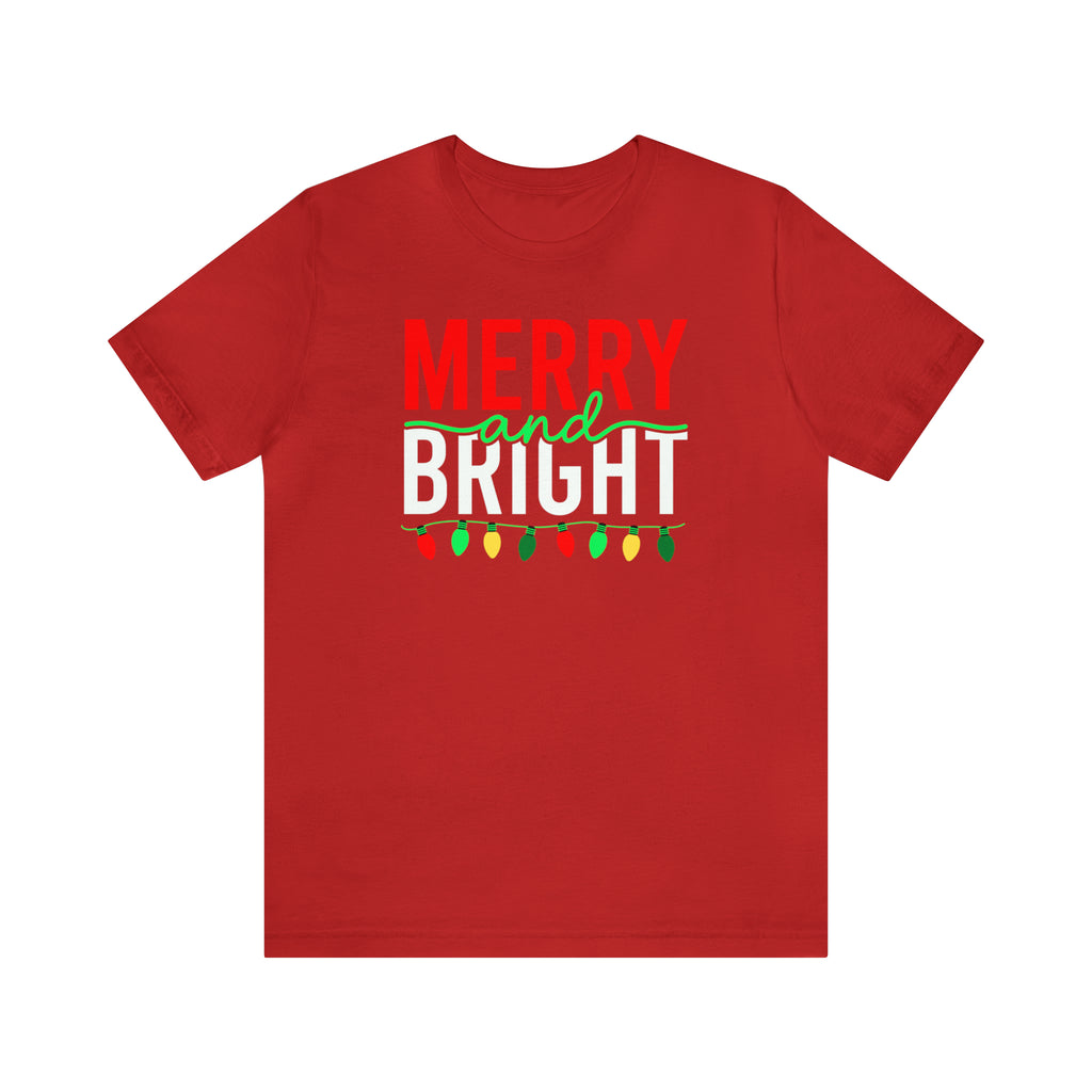 Merry and Bright Christmas T-Shirt | Festive XMas Tee | Bella Canvas 3001 Unisex | Happy Holidays Short Sleeve T-Shirt