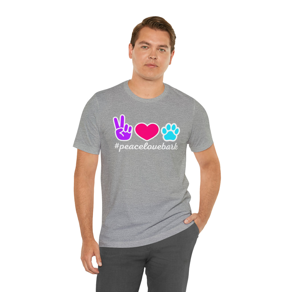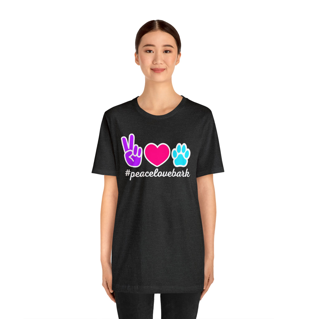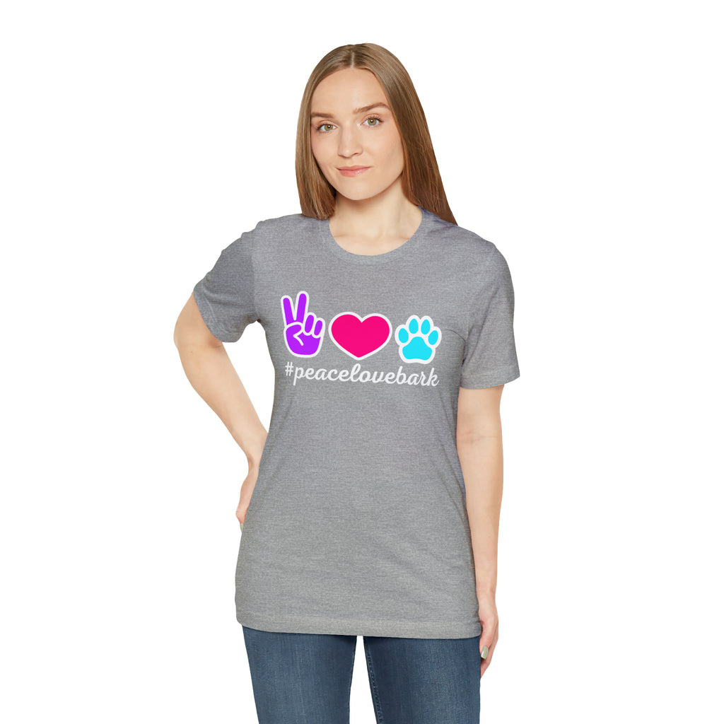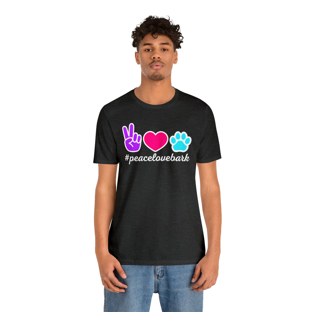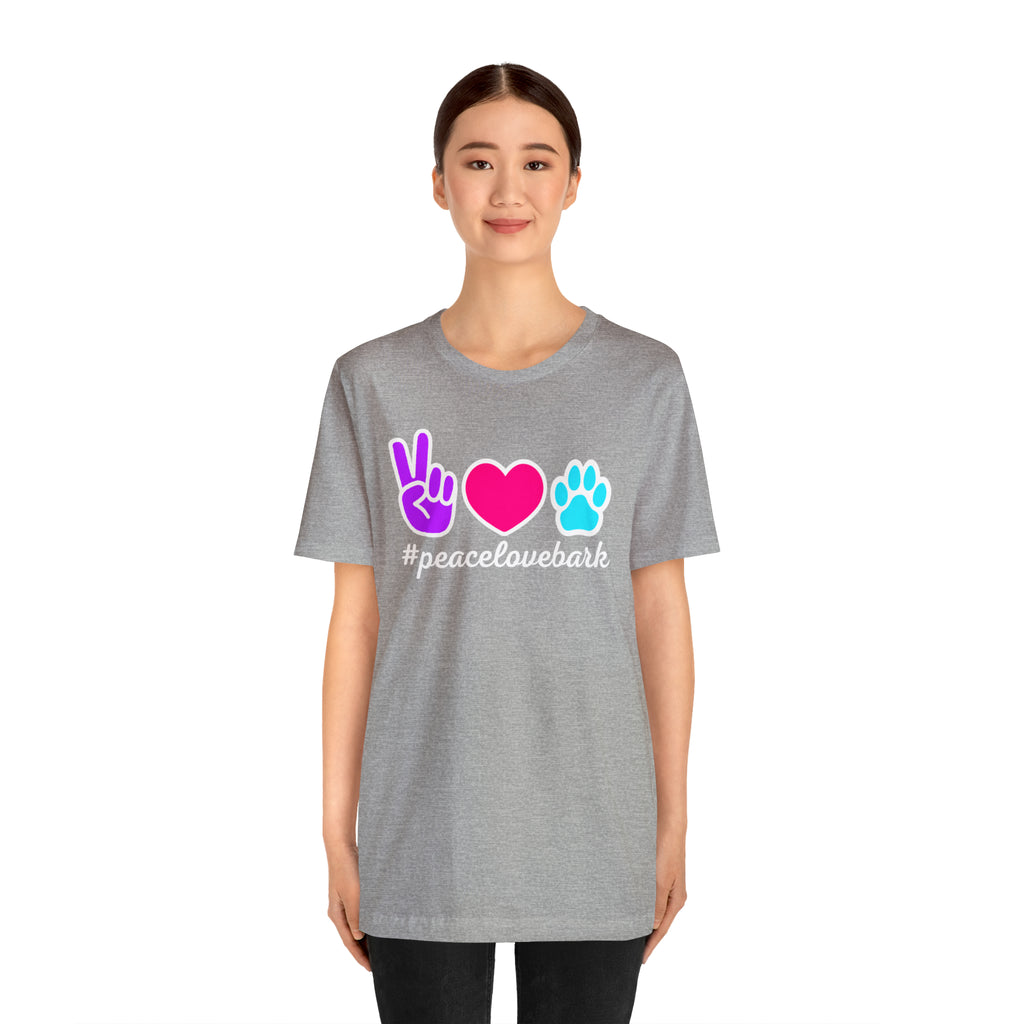 Peace Love Bark Dog T-Shirt | Funny Dog Tee | Bella Canvas 3001 Unisex | Dog Lovers Short Sleeve Tshirt