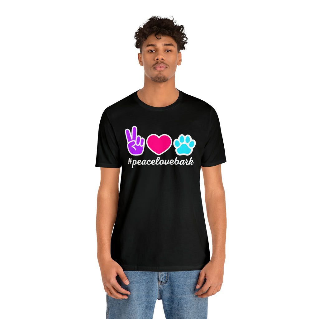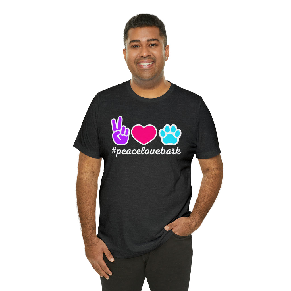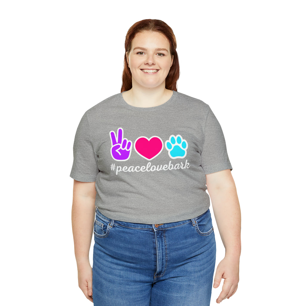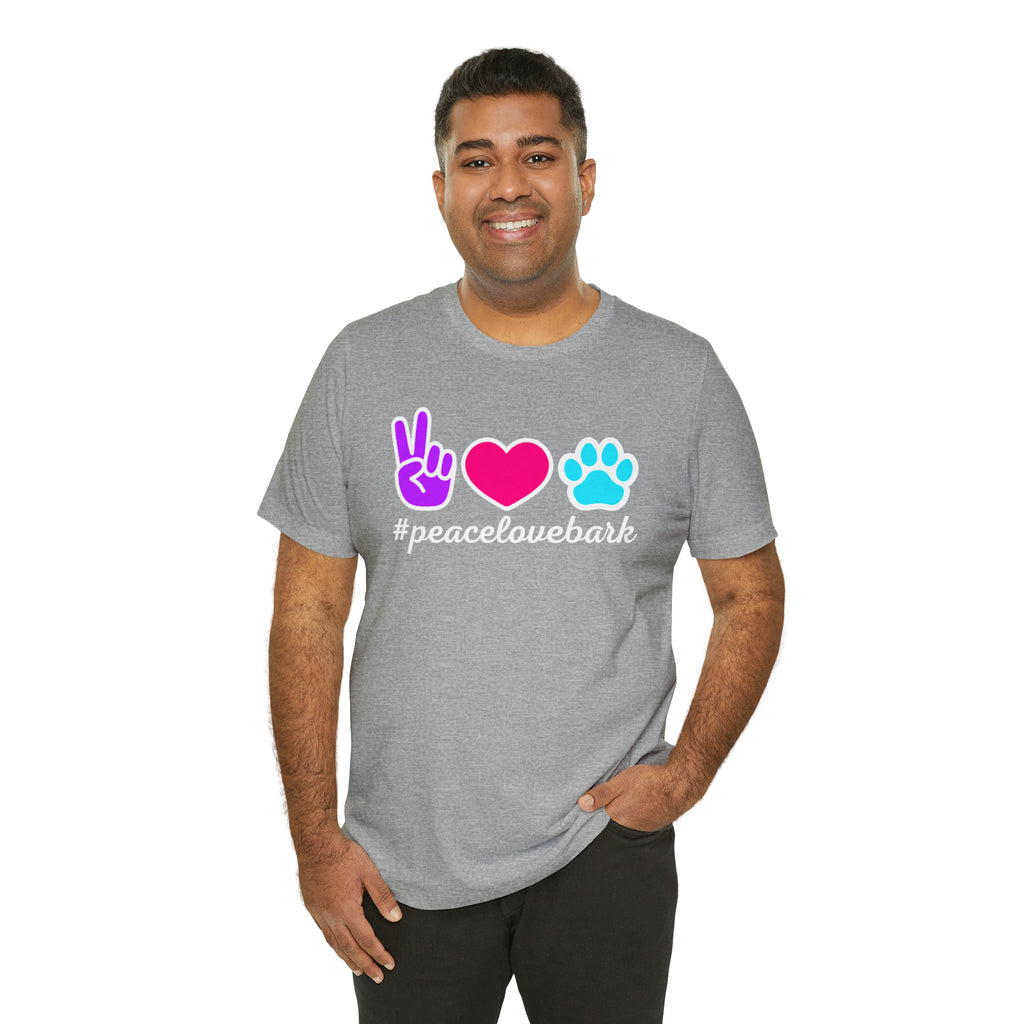 Peace Love Bark Dog T-Shirt | Funny Dog Tee | Bella Canvas 3001 Unisex | Dog Lovers Short Sleeve Tshirt