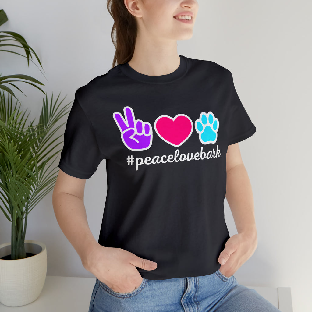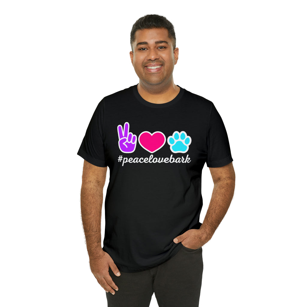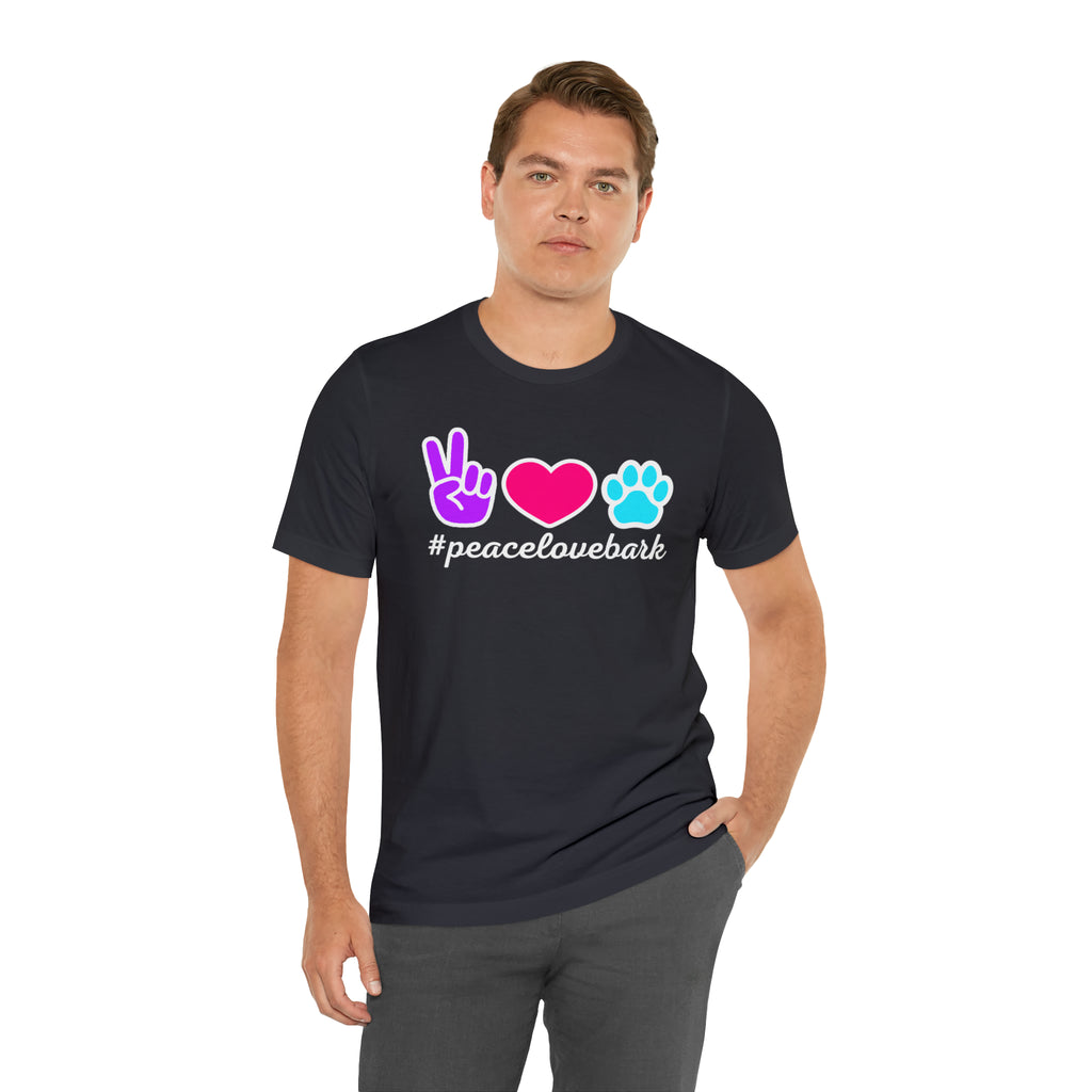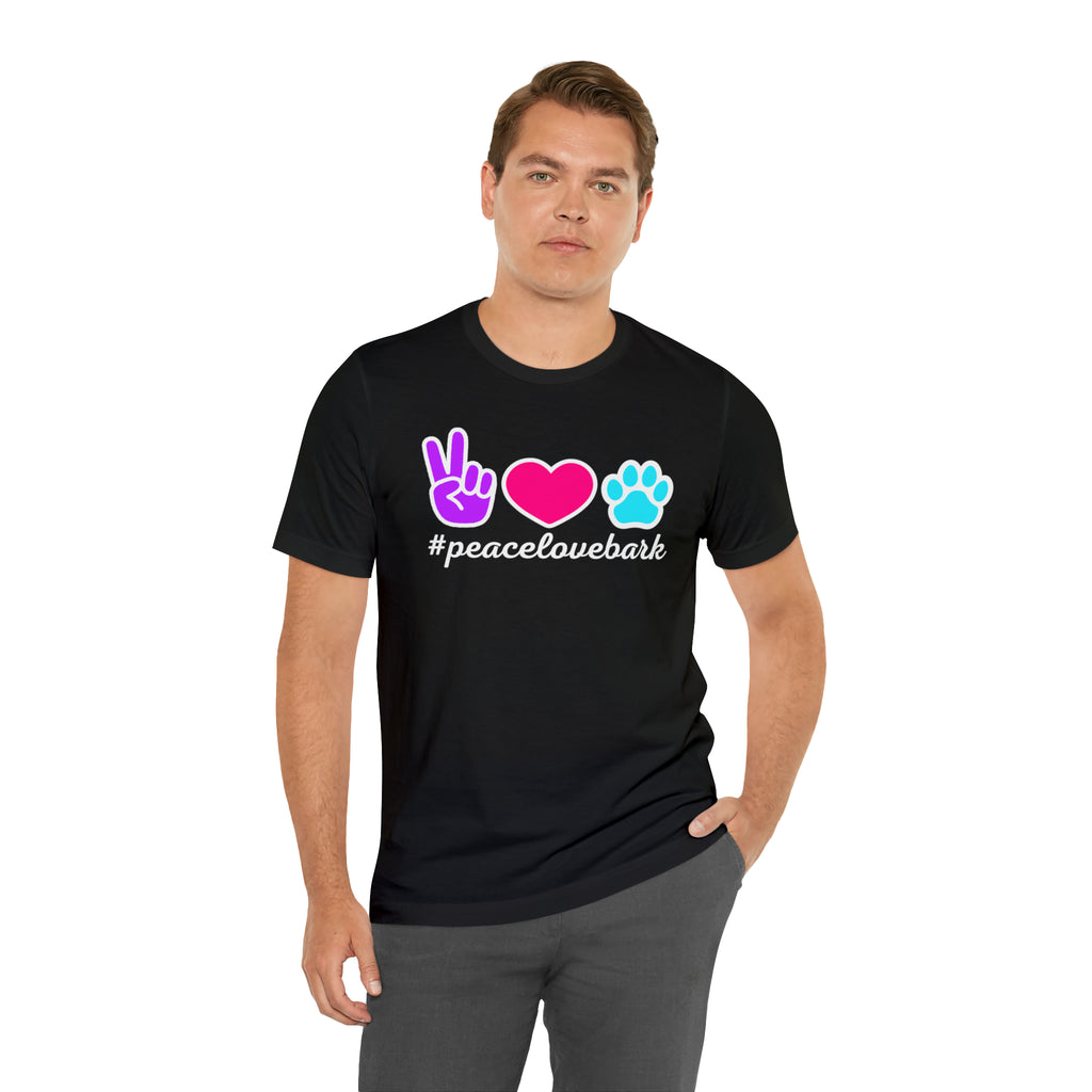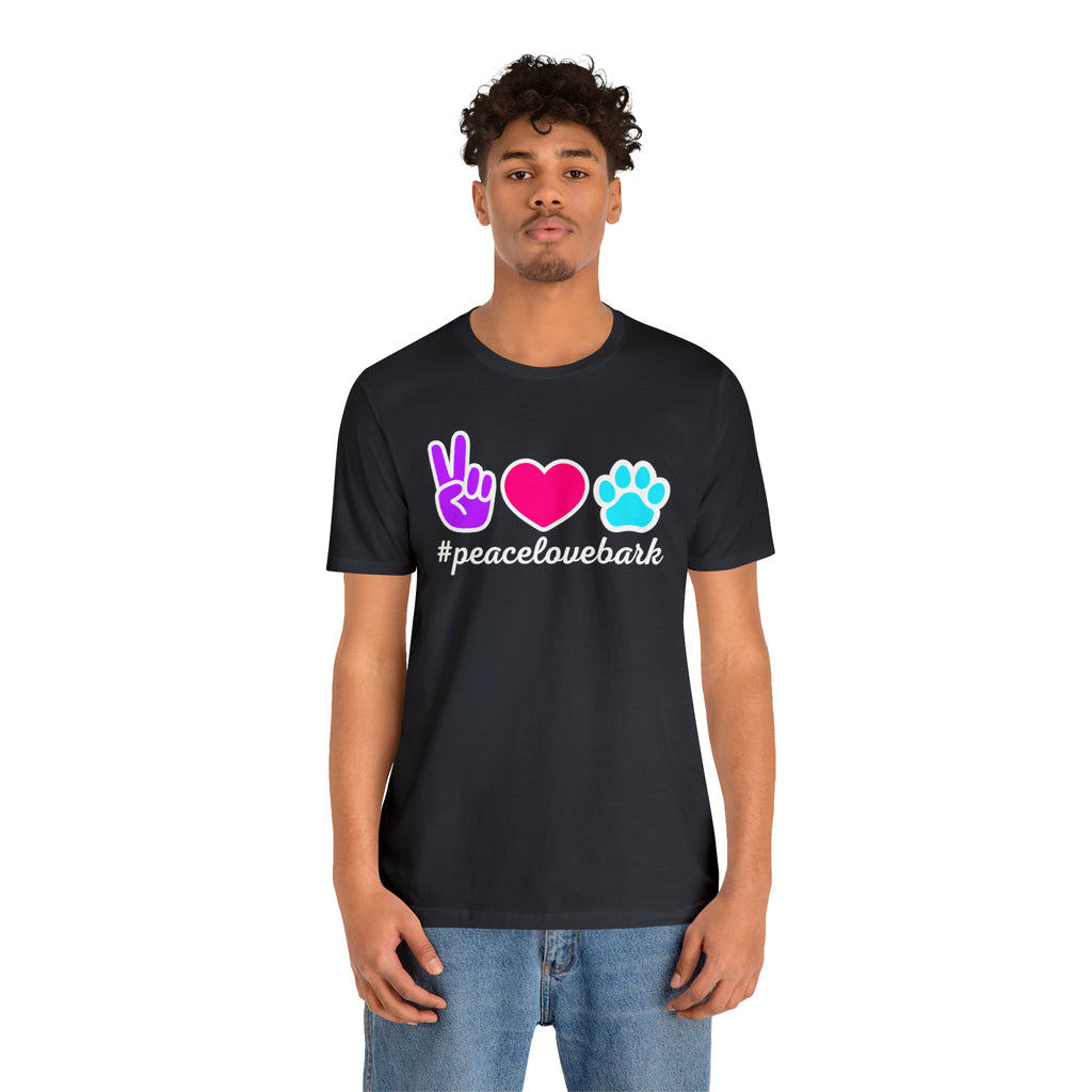 Peace Love Bark Dog T-Shirt | Funny Dog Tee | Bella Canvas 3001 Unisex | Dog Lovers Short Sleeve Tshirt