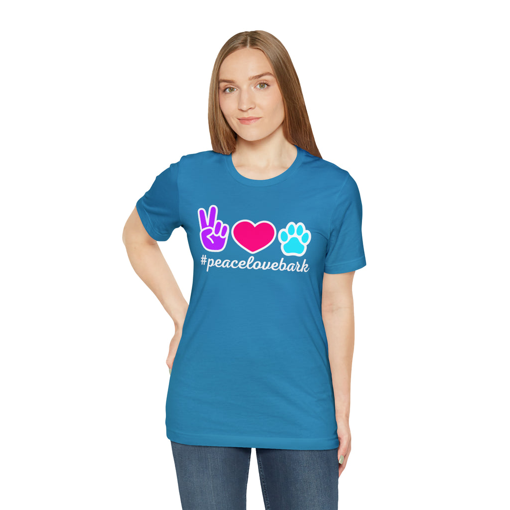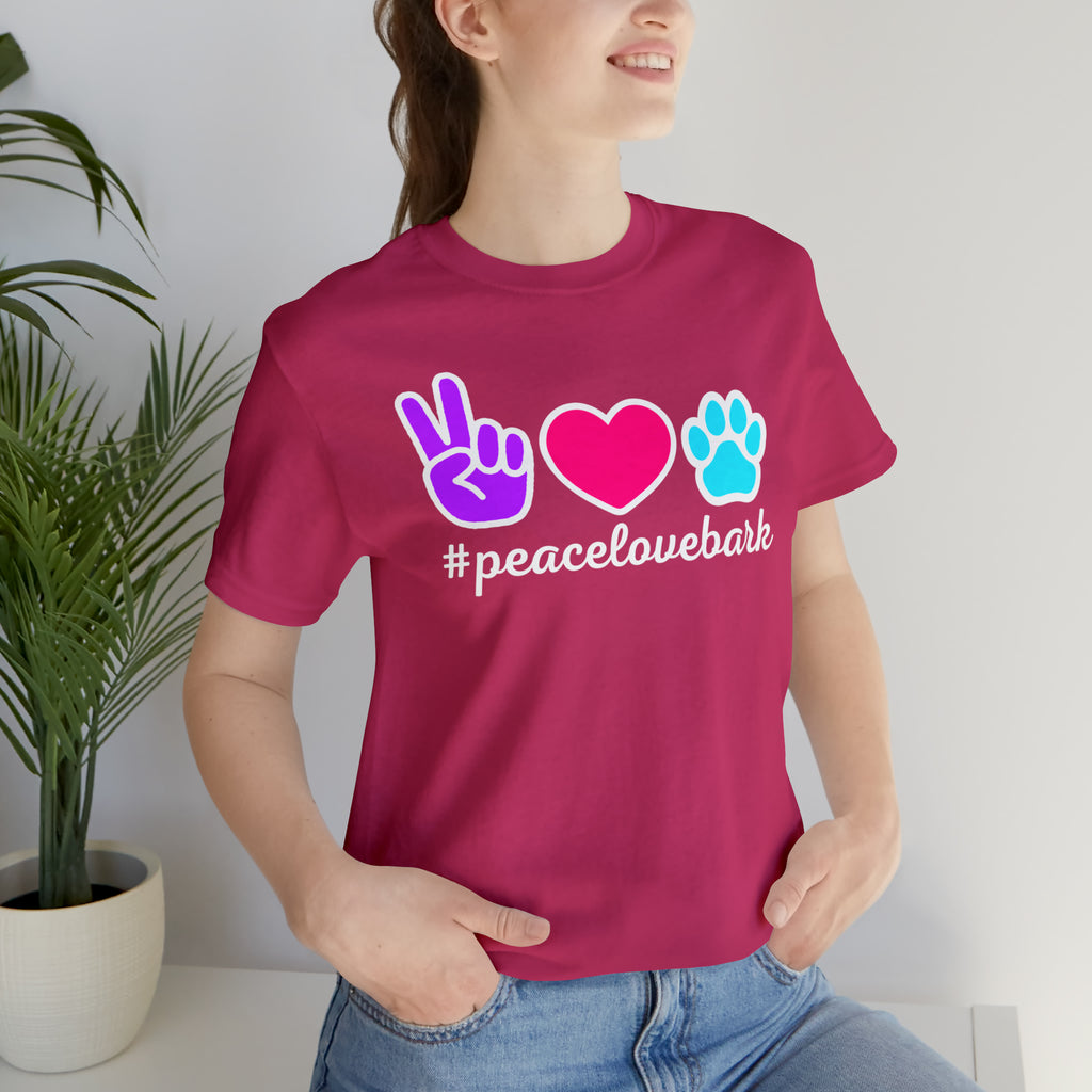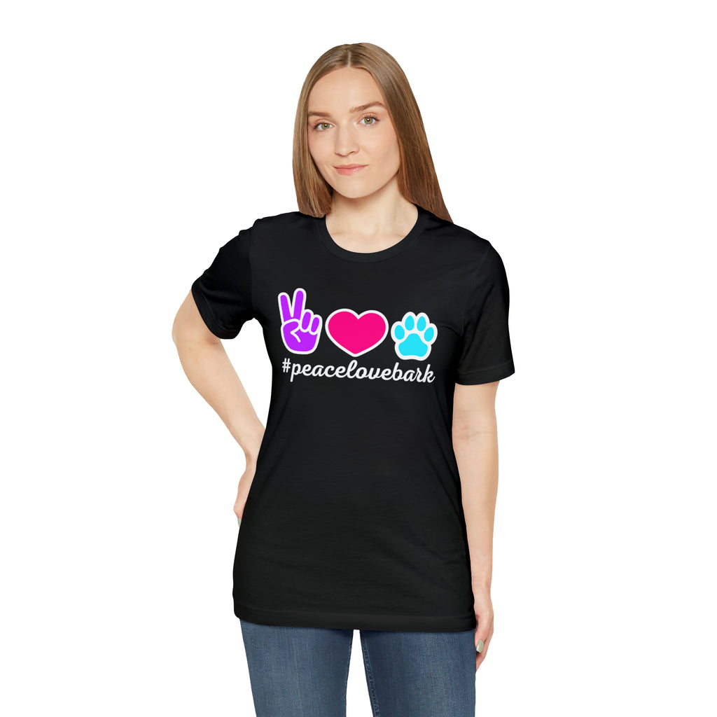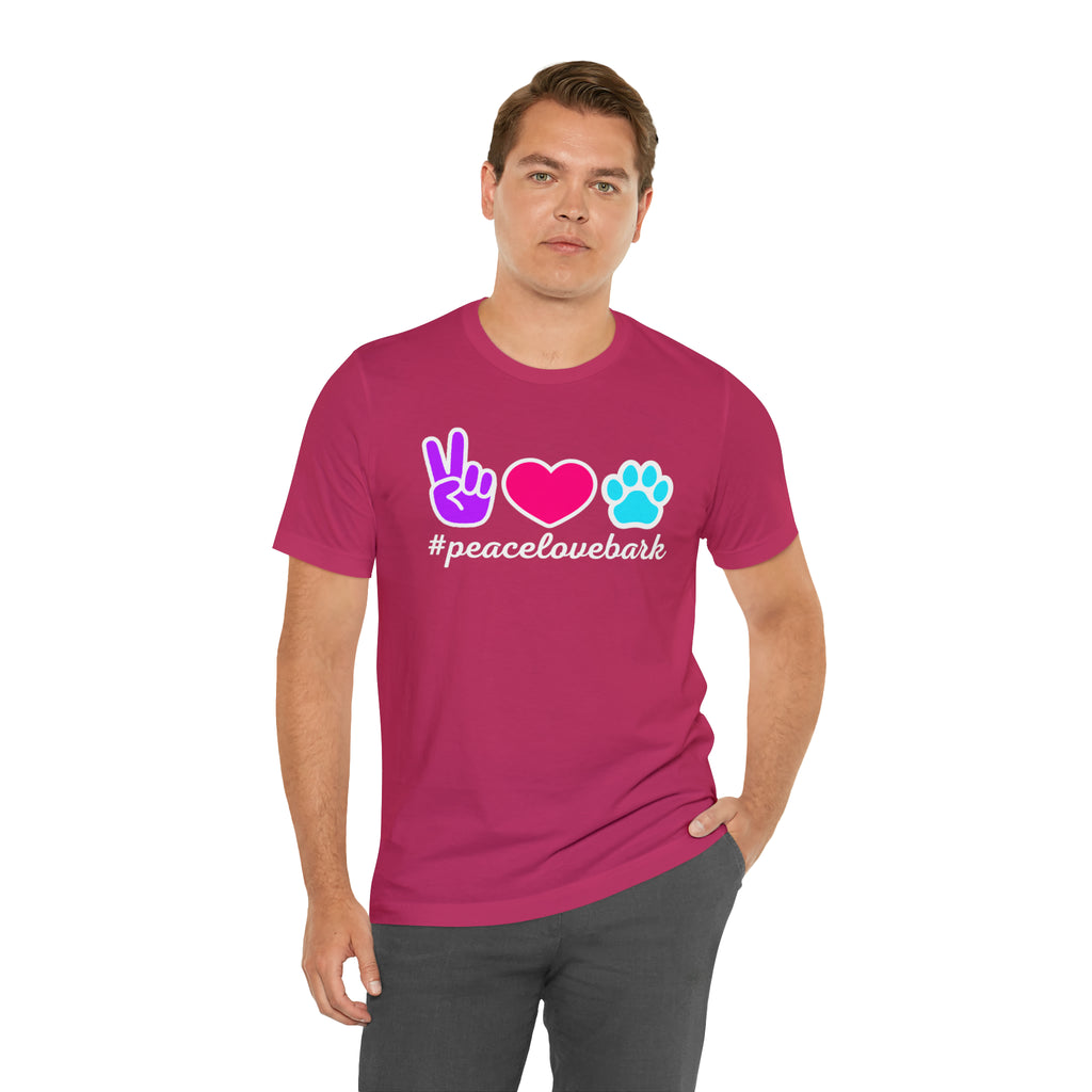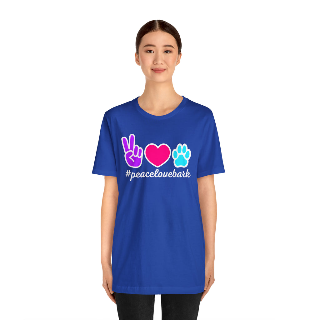 Peace Love Bark Dog T-Shirt | Funny Dog Tee | Bella Canvas 3001 Unisex | Dog Lovers Short Sleeve Tshirt