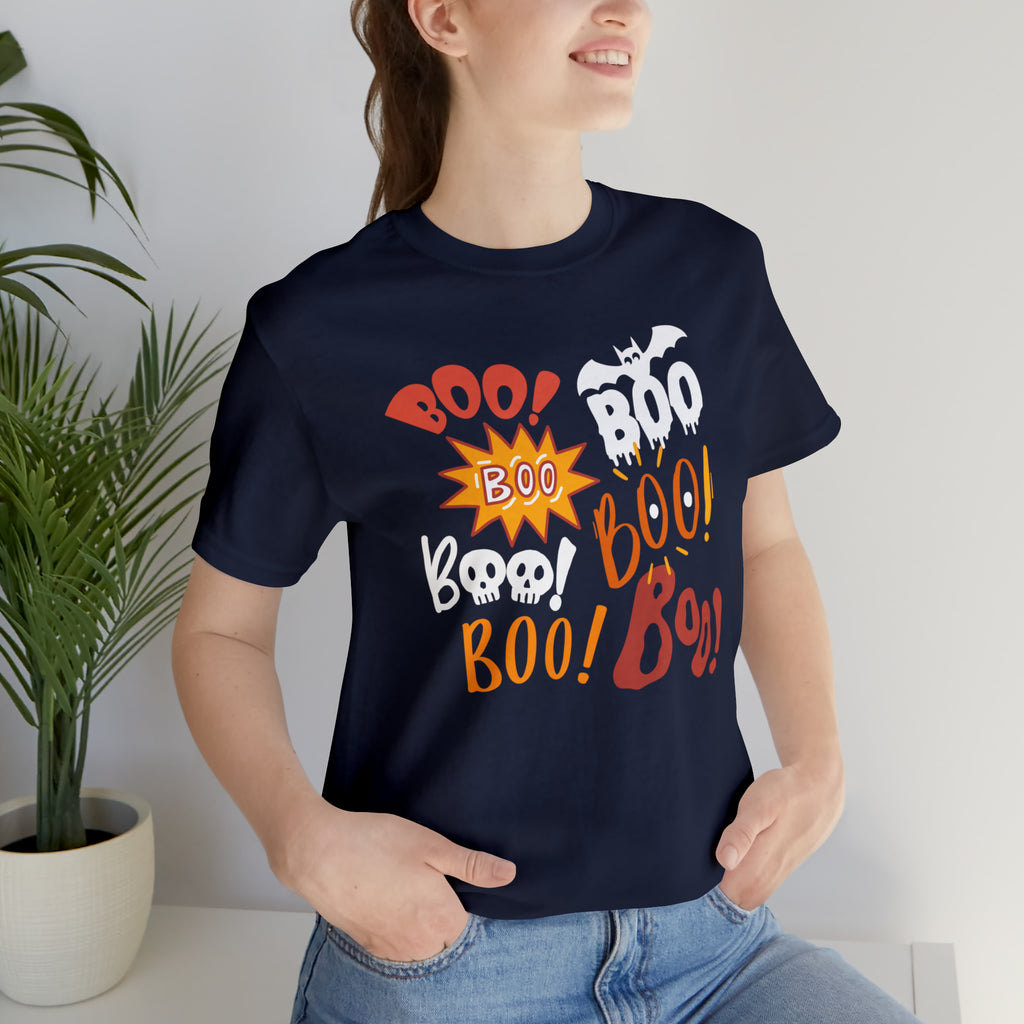 Boo! Boo! Boo! Halloween T-Shirt | Scary Boo Tee | Bella Canvas 3001Unisex | Creepy Short Sleeve Tshirt