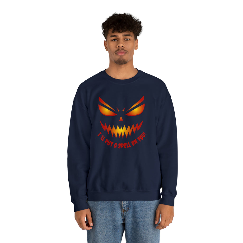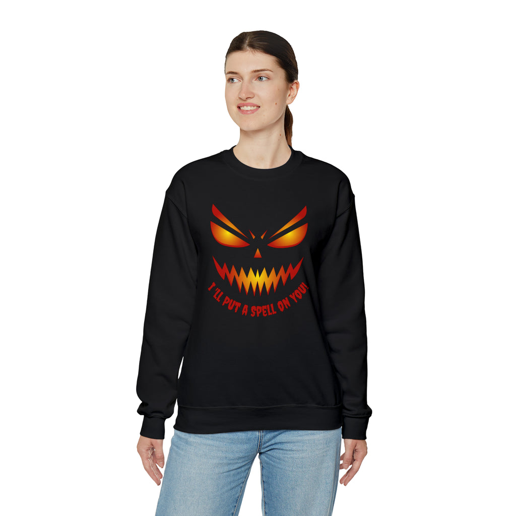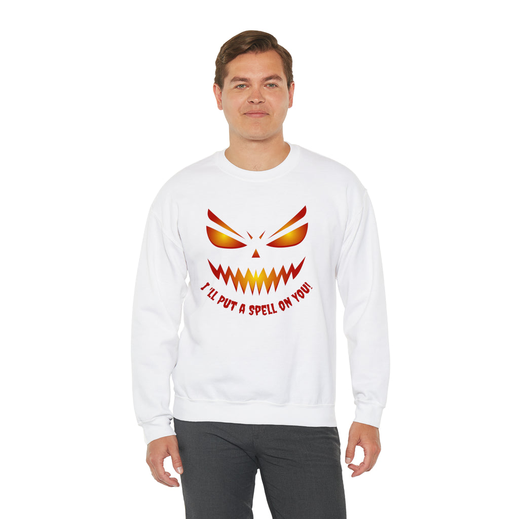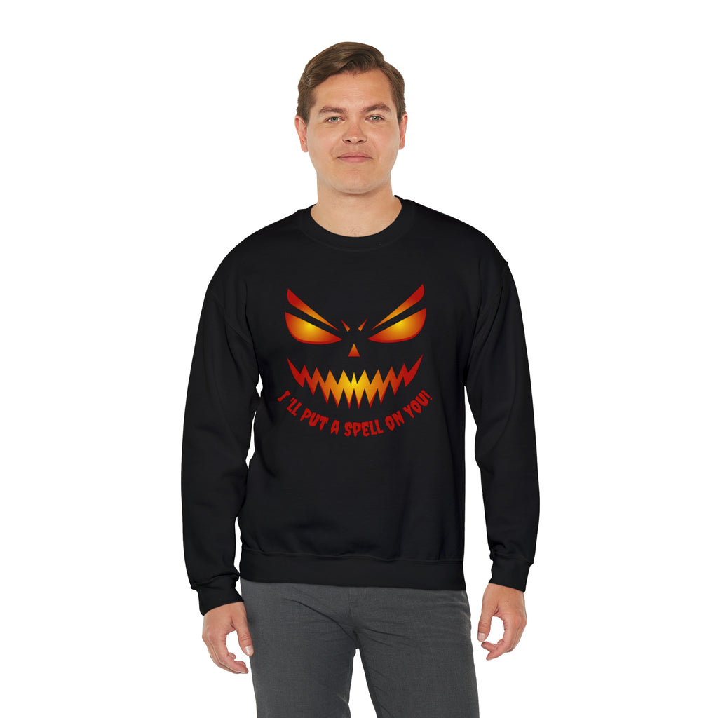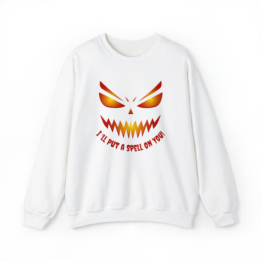 Creepy Jack-O-Lantern Face Halloween Sweatshirt, Scary Smile Pullover, Spooky Unisex Heavy Blend Crewneck Sweatshirt