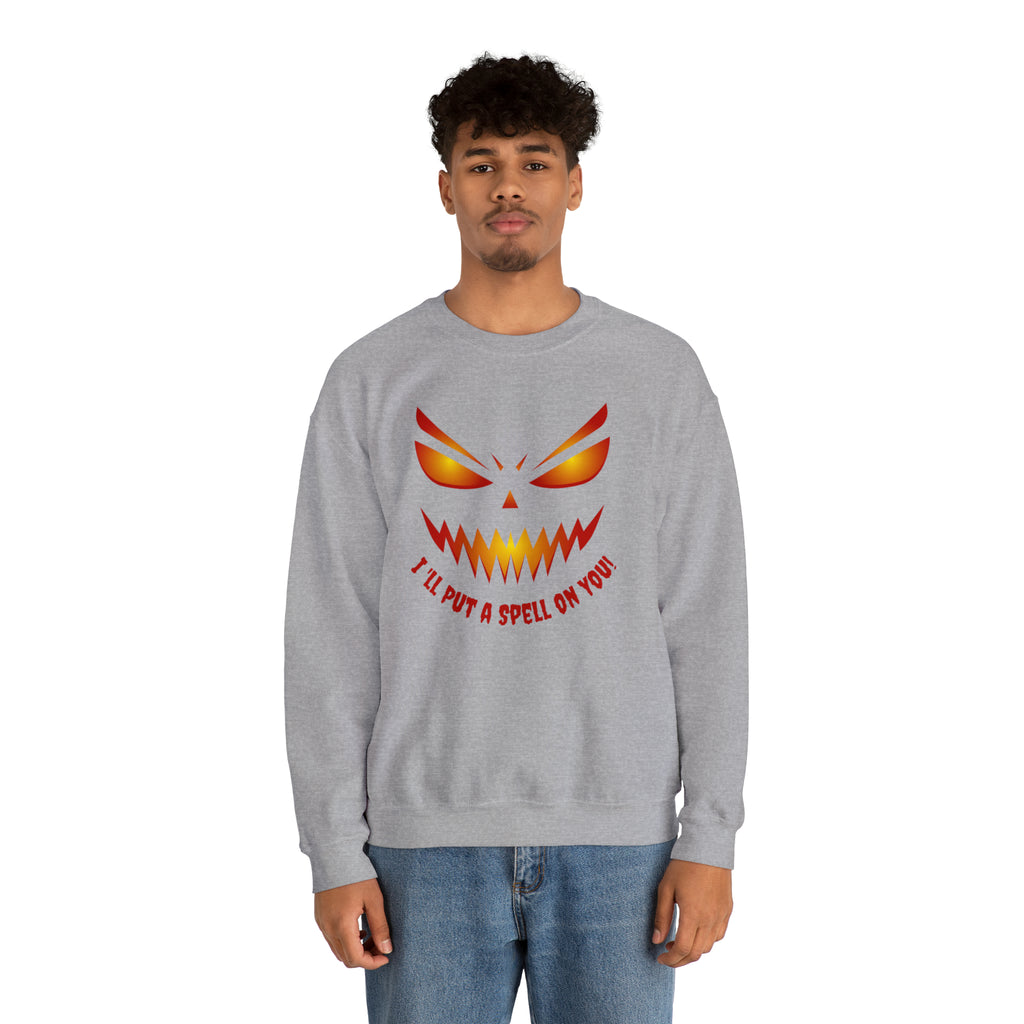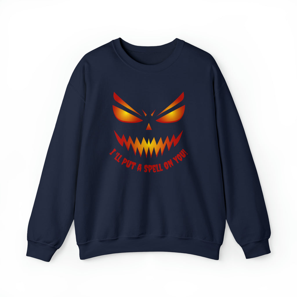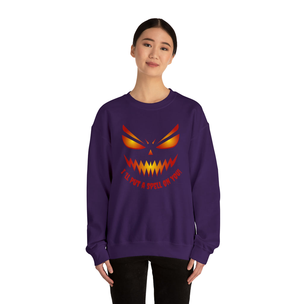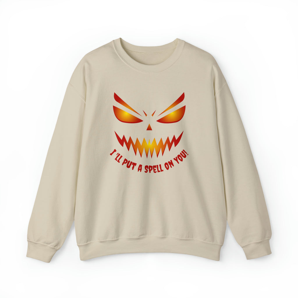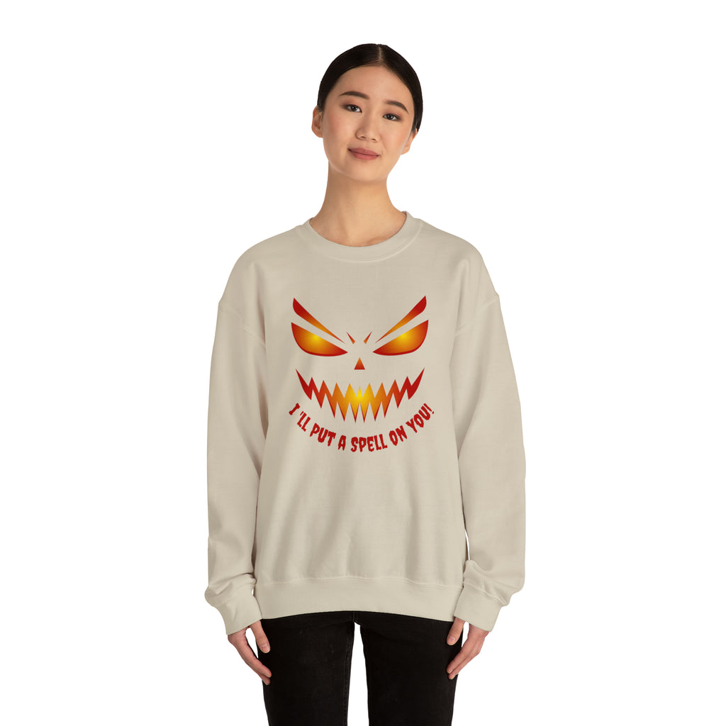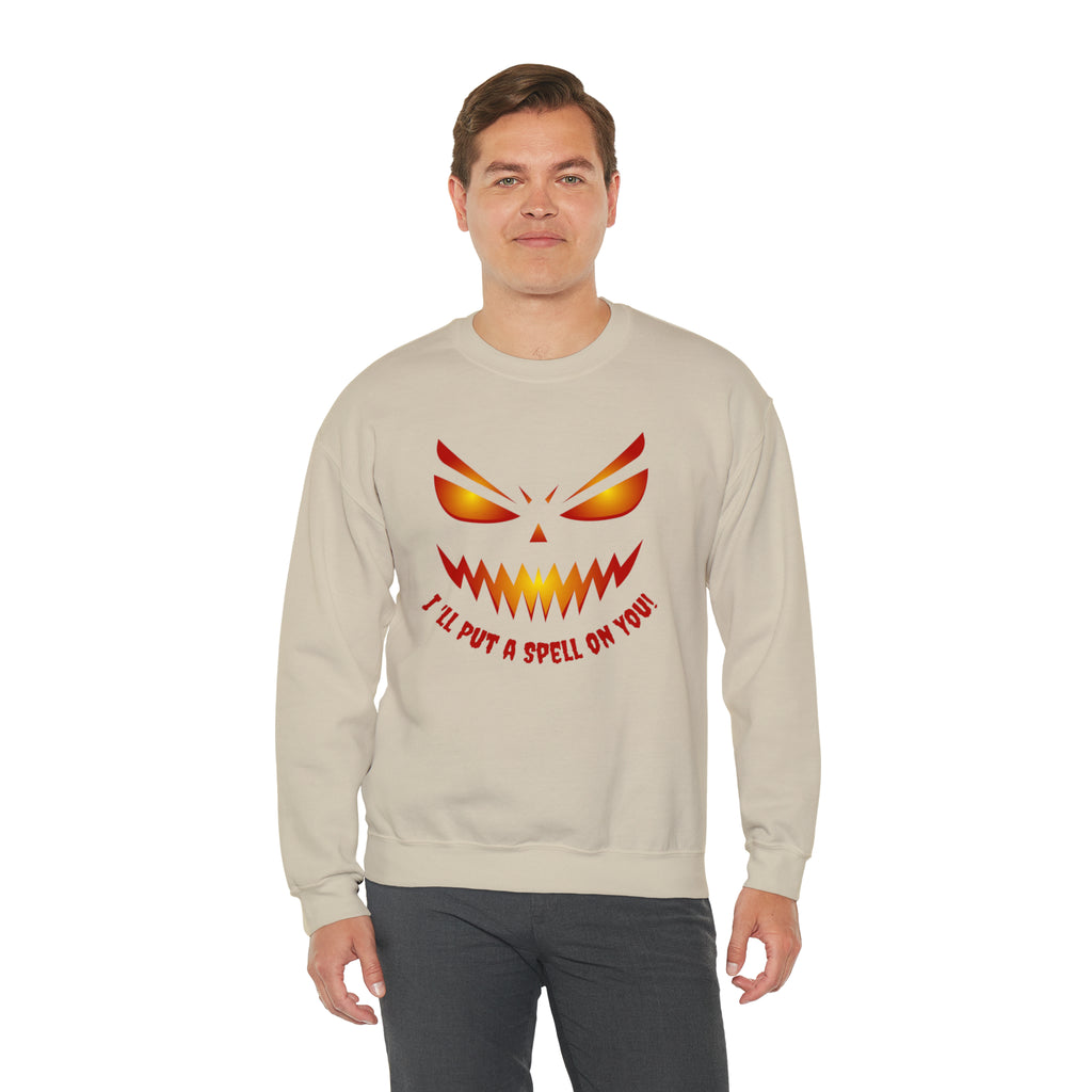 Creepy Jack-O-Lantern Face Halloween Sweatshirt, Scary Smile Pullover, Spooky Unisex Heavy Blend Crewneck Sweatshirt