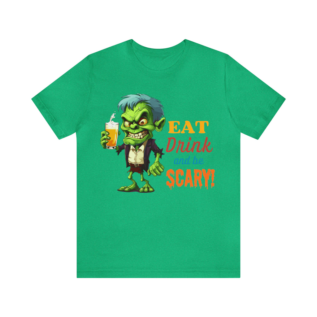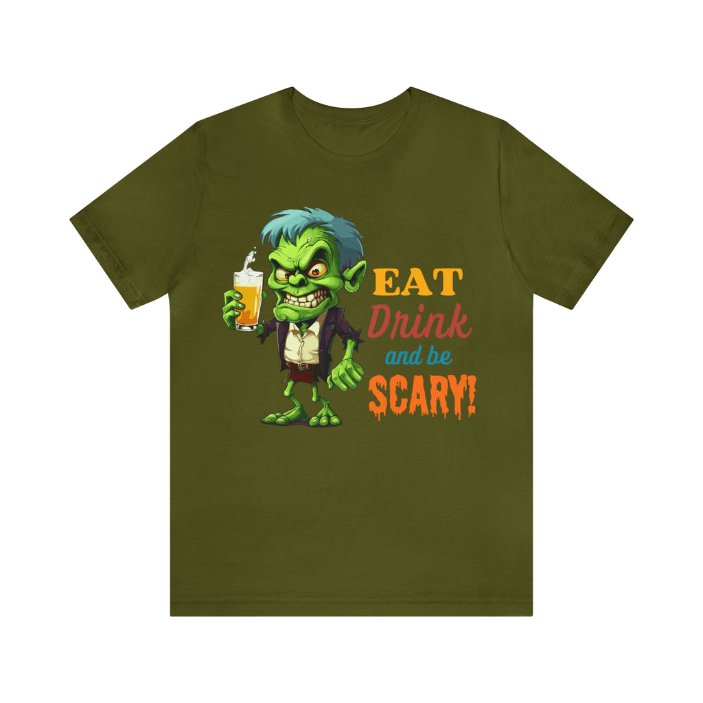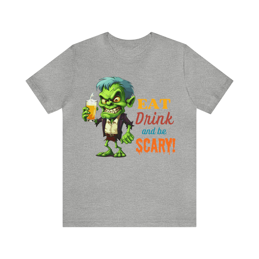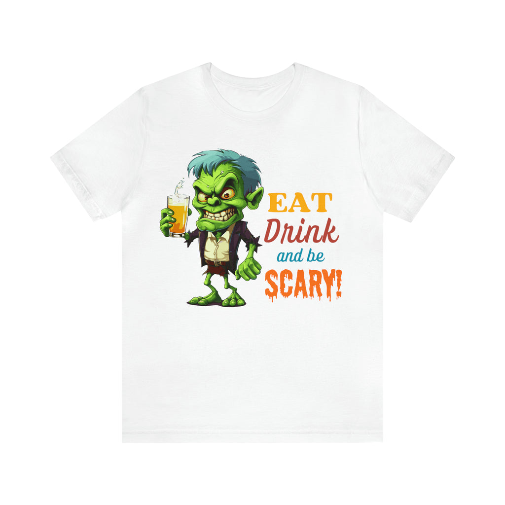 Halloween Eat Drink and Be Scary Ghoul T-Shirt Bella Canvas 3001Unisex Drinking Short Sleeve Tshirt