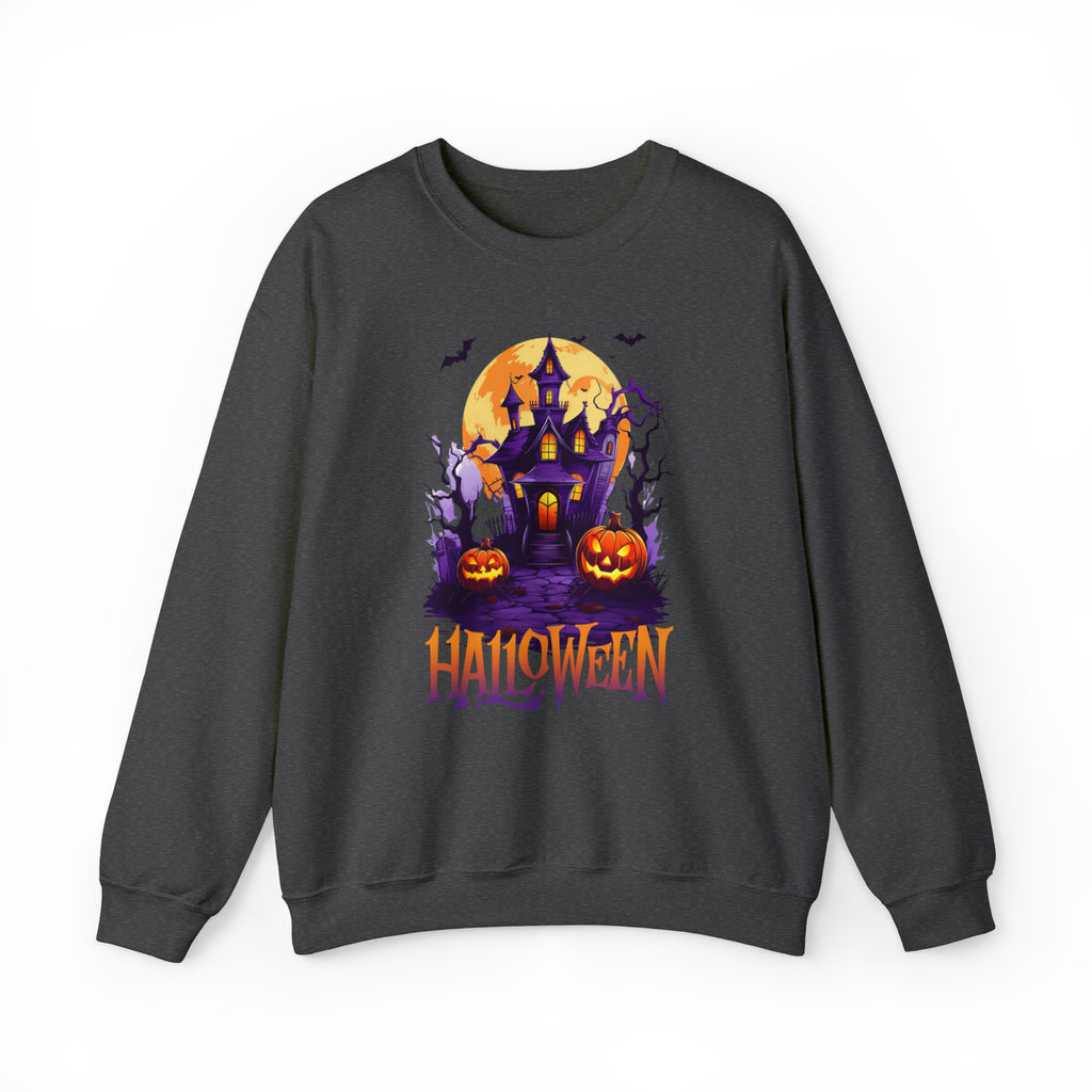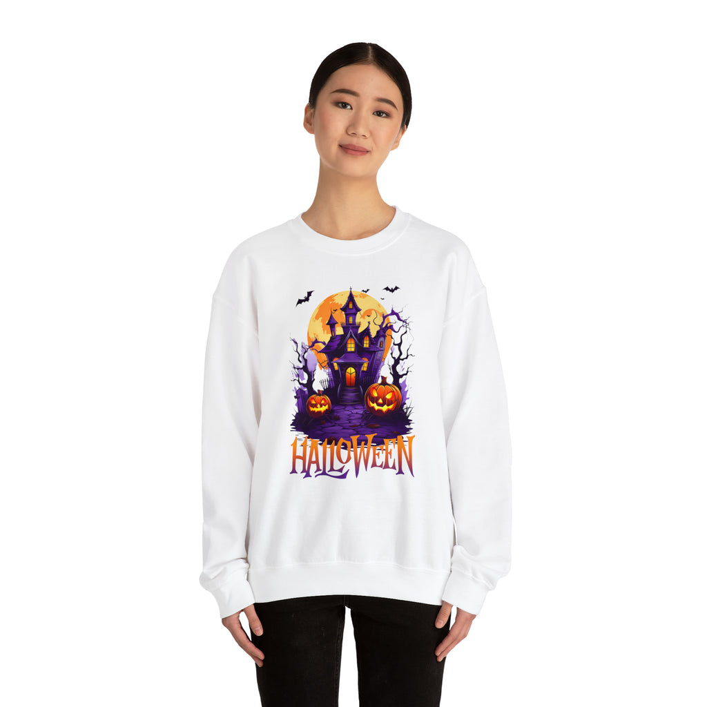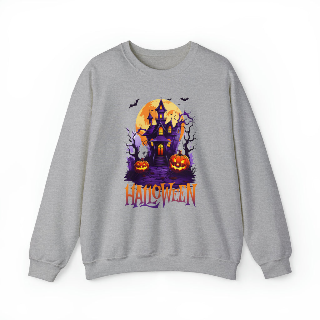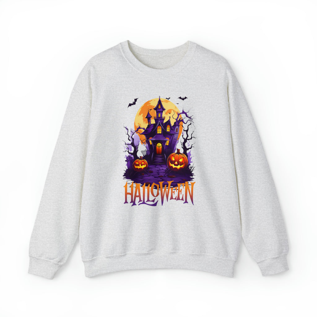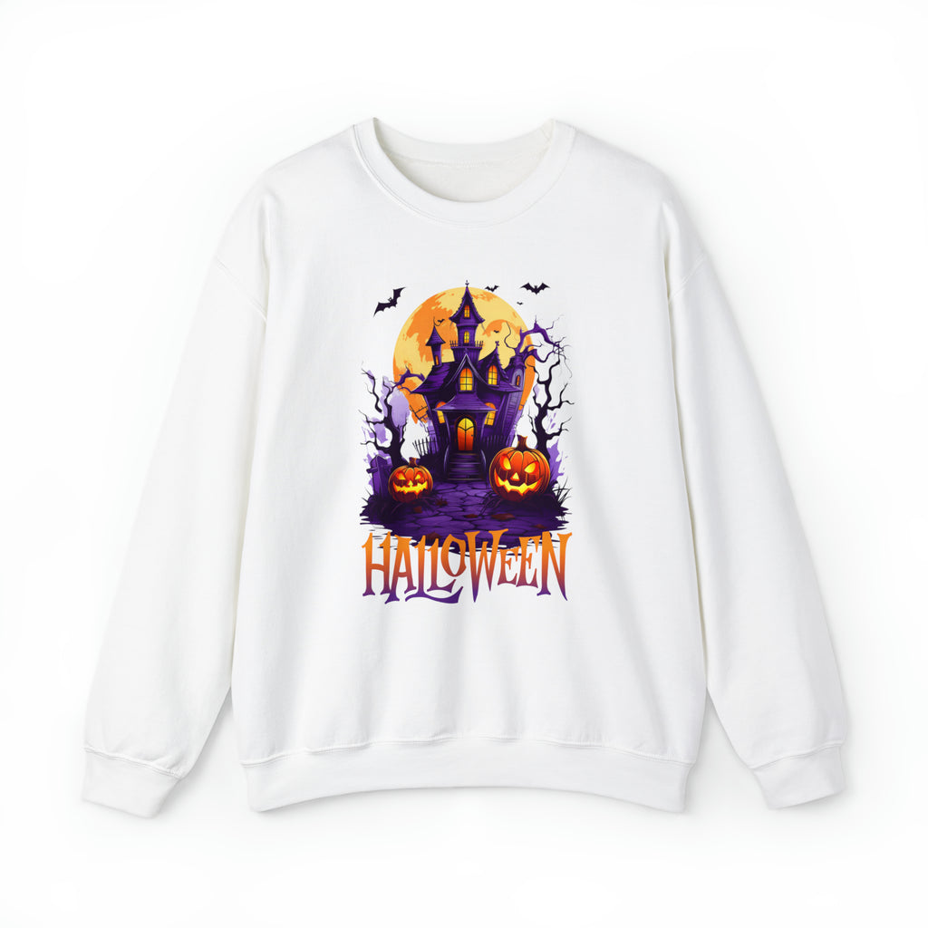 Embrace the haunting allure of Halloween with our "Halloween Haunted House Sweatshirt"! This isn't just a sweatshirt – it's a chillingly delightful tribute to the spine-tingling fun of the season.