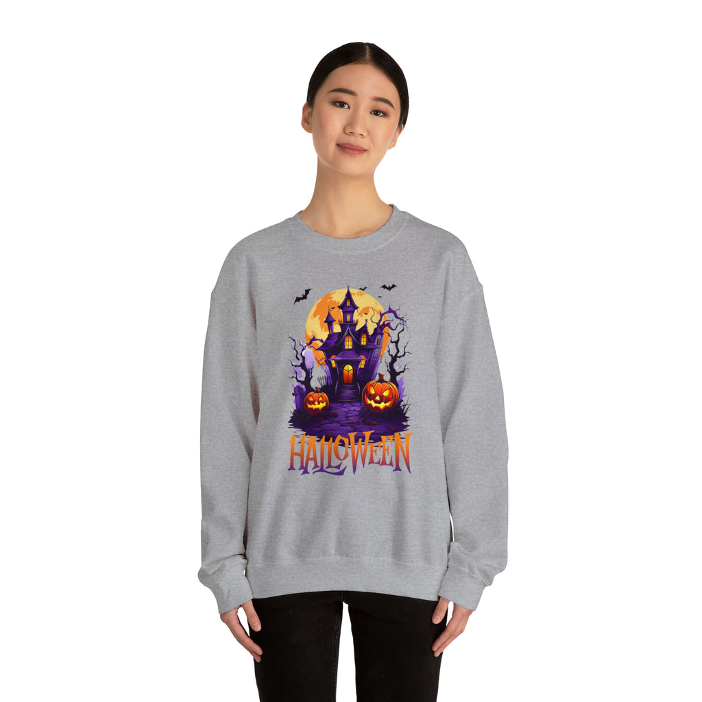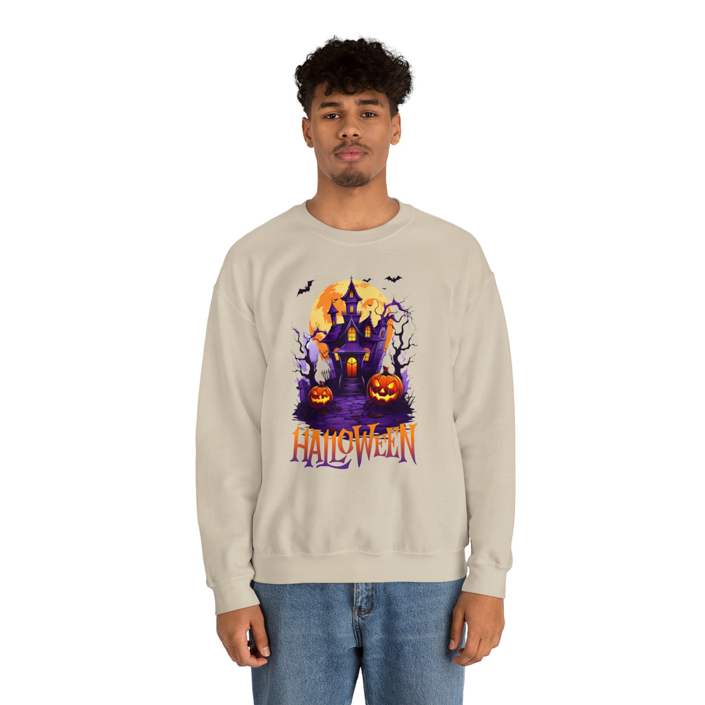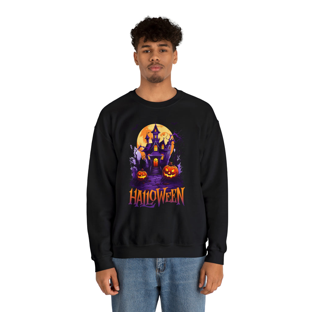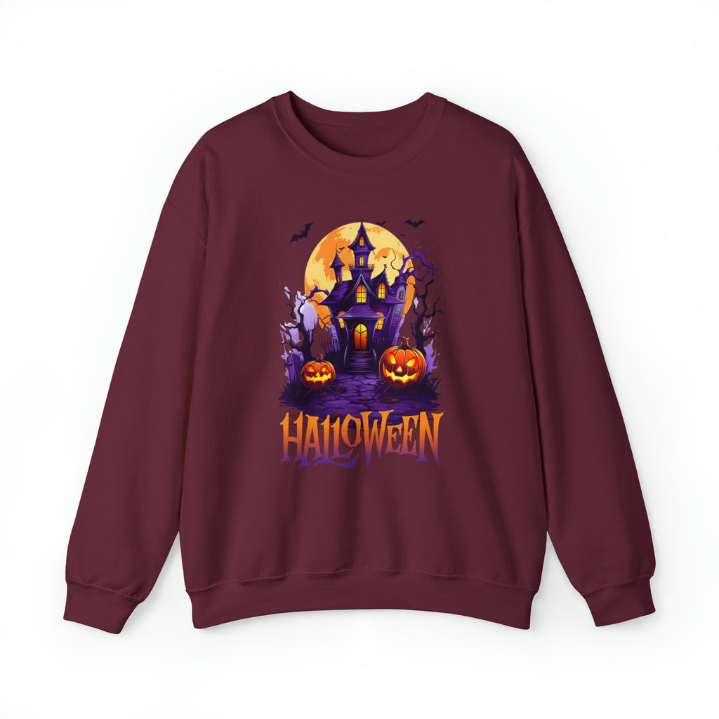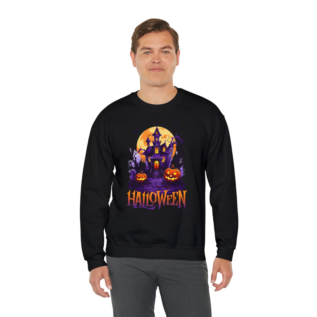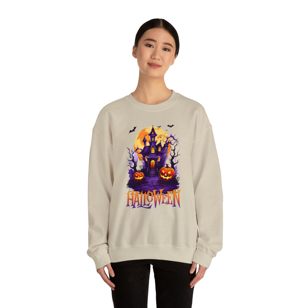 Embrace the haunting allure of Halloween with our "Halloween Haunted House Sweatshirt"! This isn't just a sweatshirt – it's a chillingly delightful tribute to the spine-tingling fun of the season.