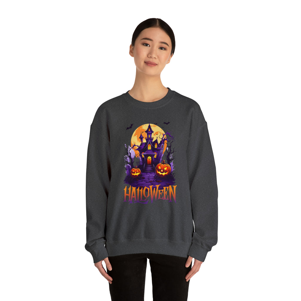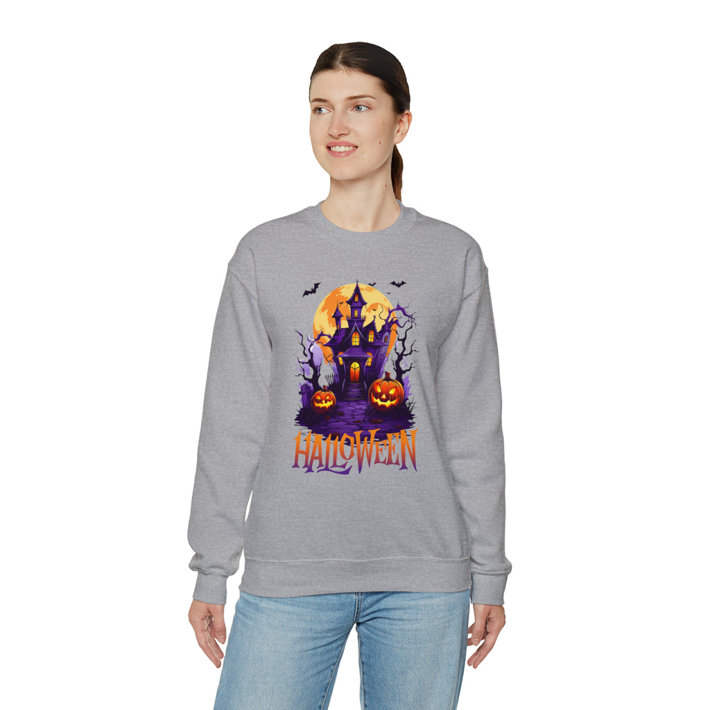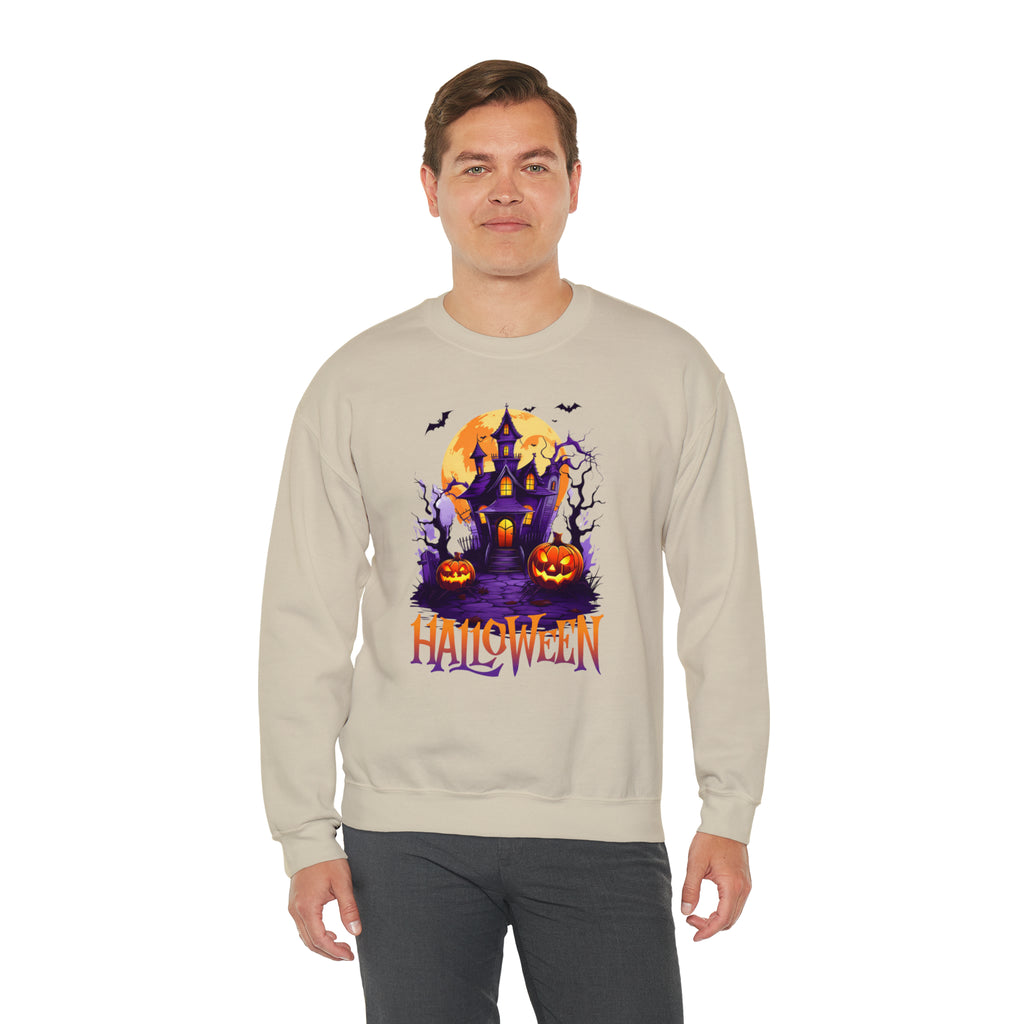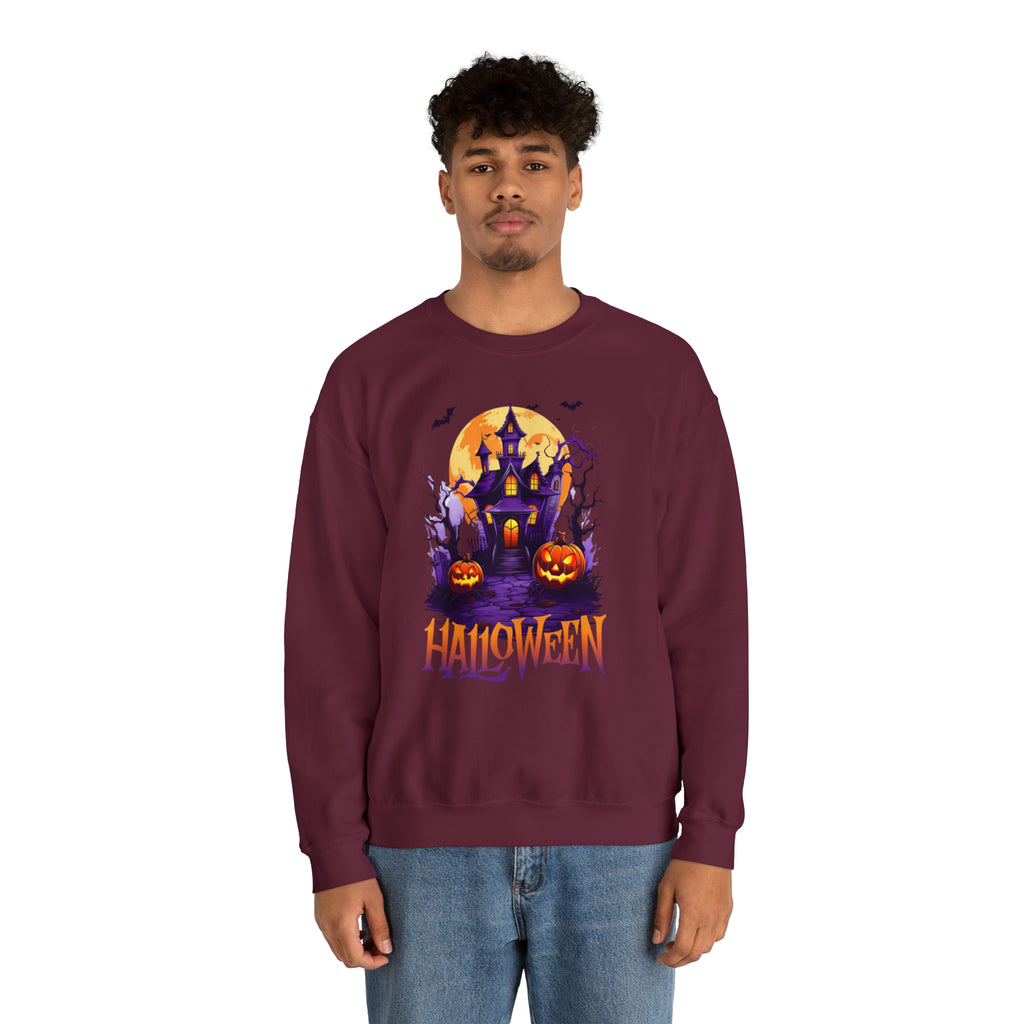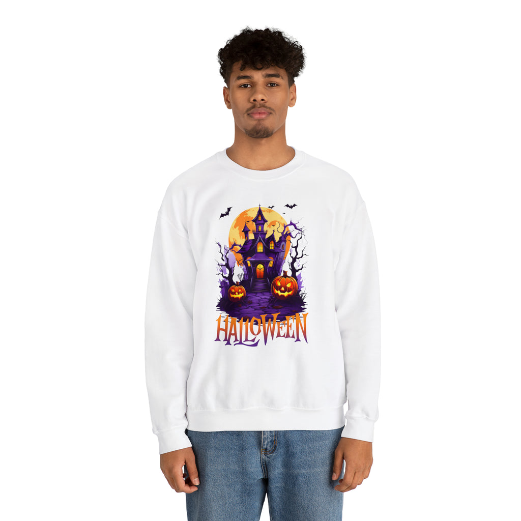 Embrace the haunting allure of Halloween with our "Halloween Haunted House Sweatshirt"! This isn't just a sweatshirt – it's a chillingly delightful tribute to the spine-tingling fun of the season.