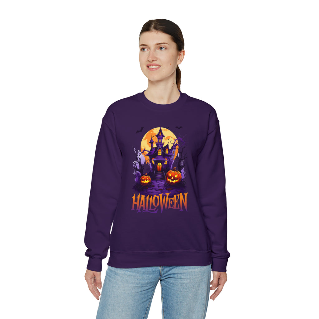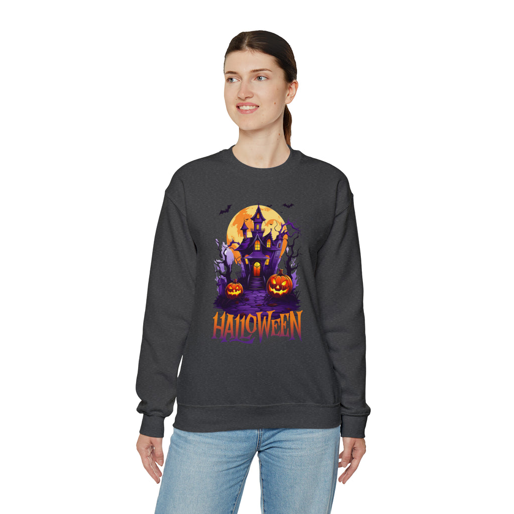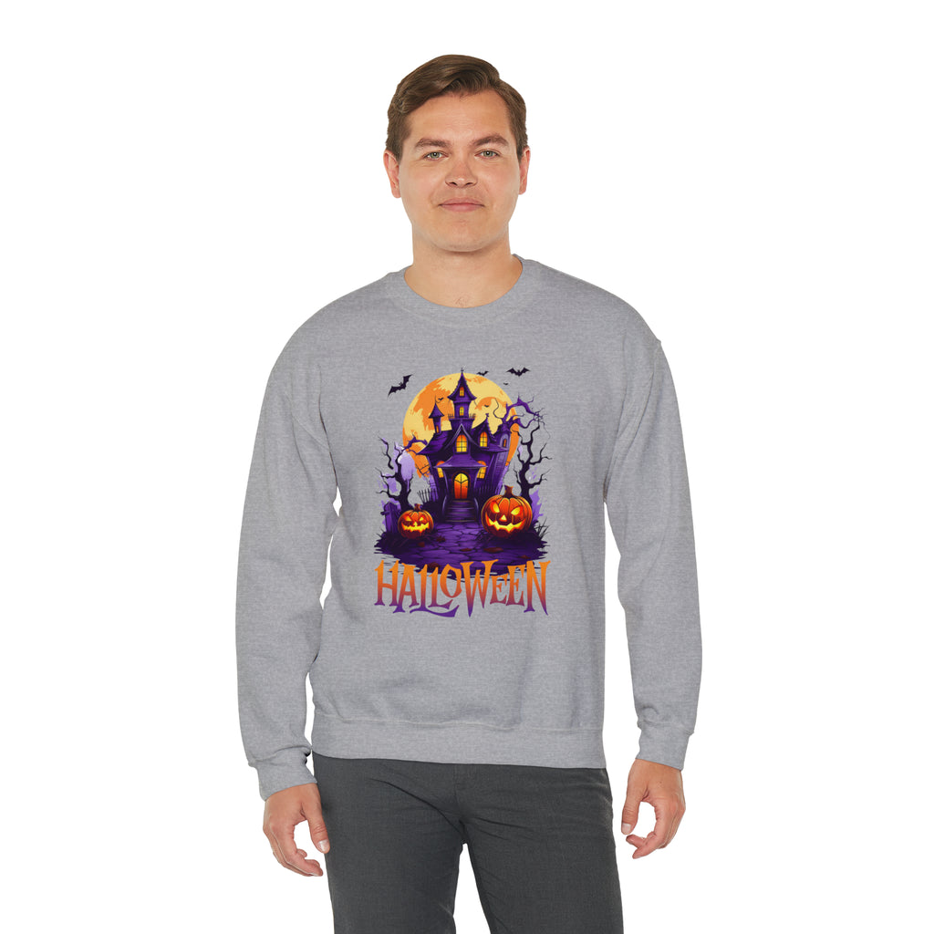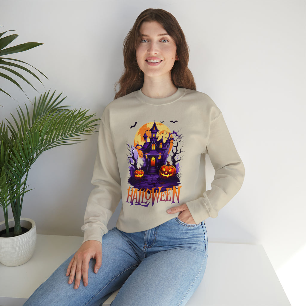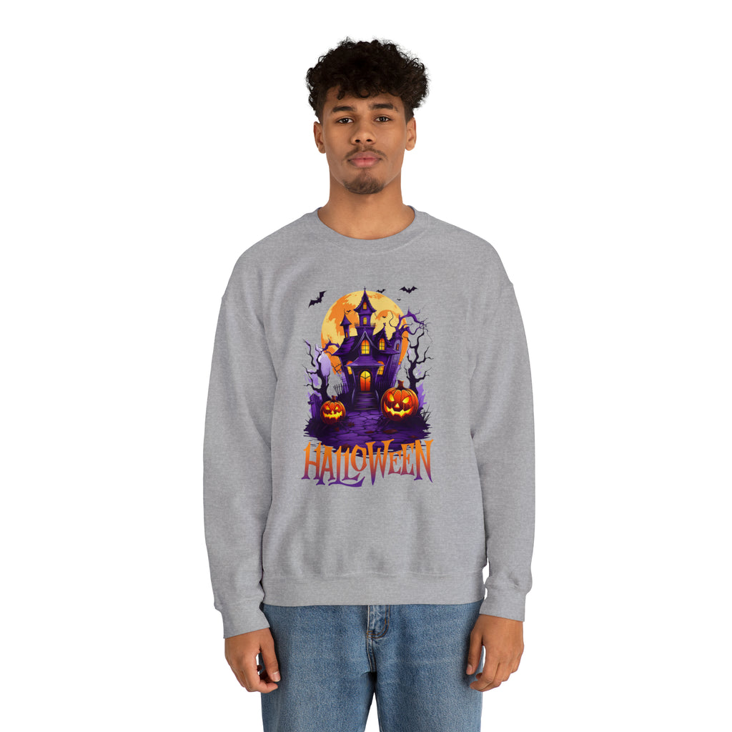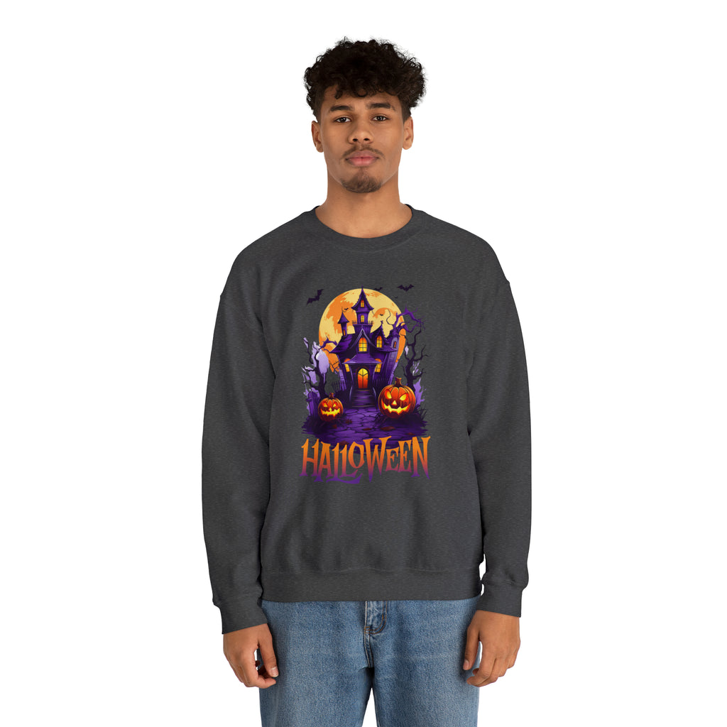 Embrace the haunting allure of Halloween with our "Halloween Haunted House Sweatshirt"! This isn't just a sweatshirt – it's a chillingly delightful tribute to the spine-tingling fun of the season.