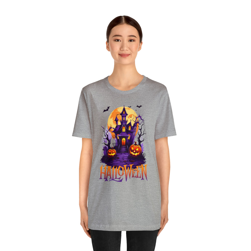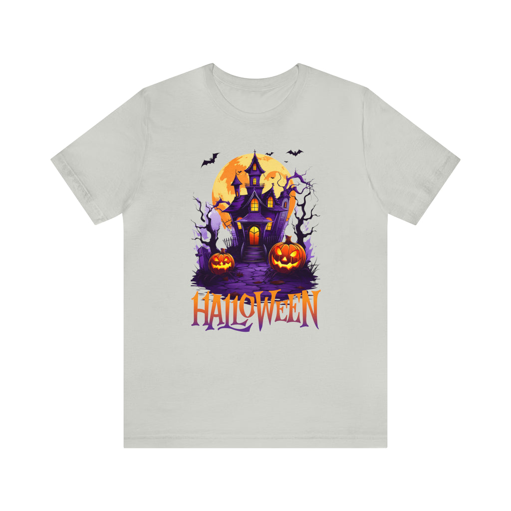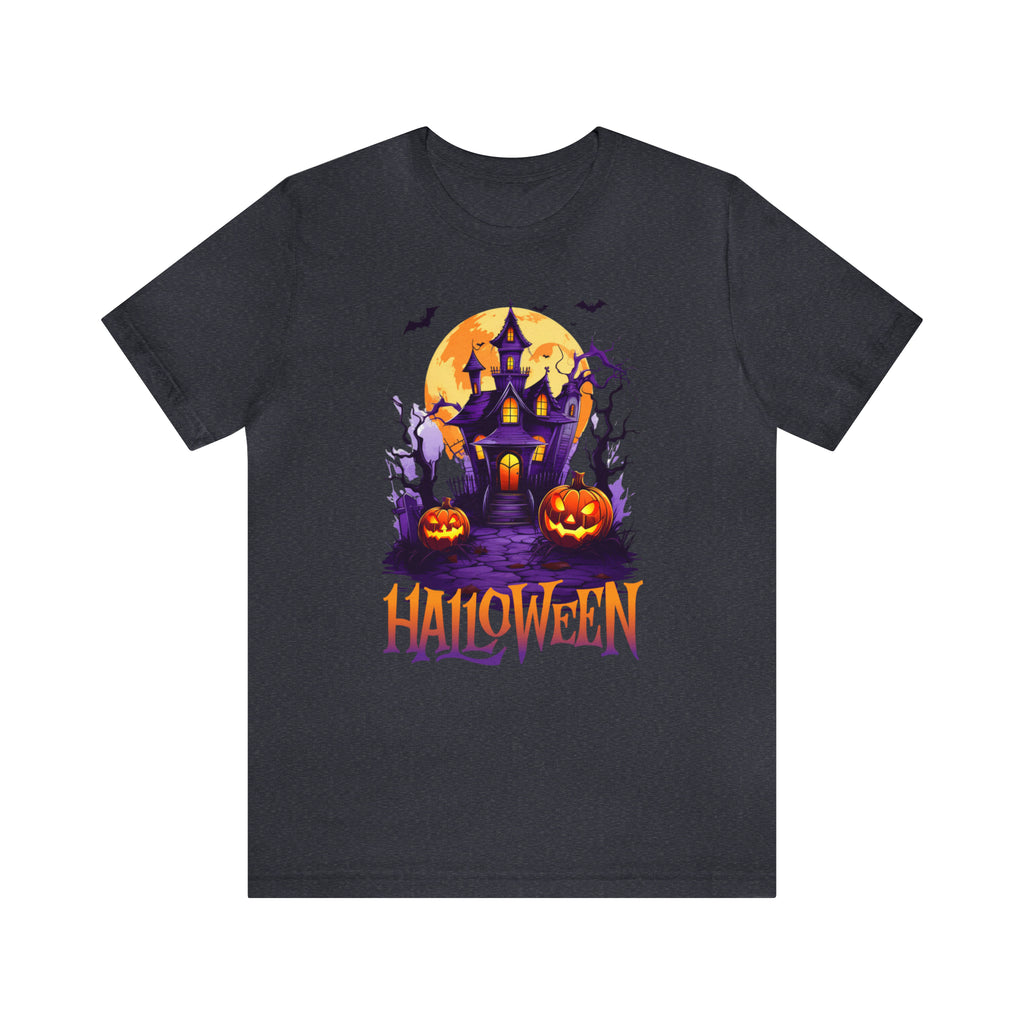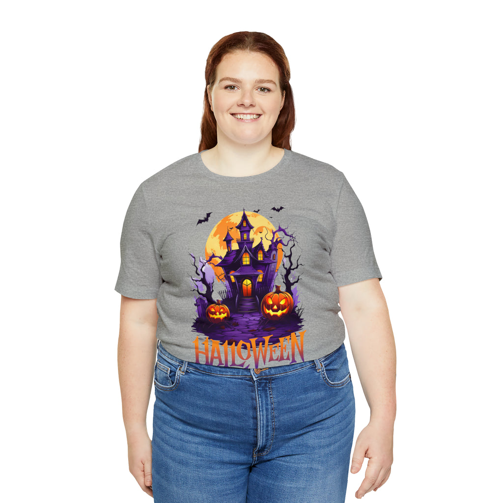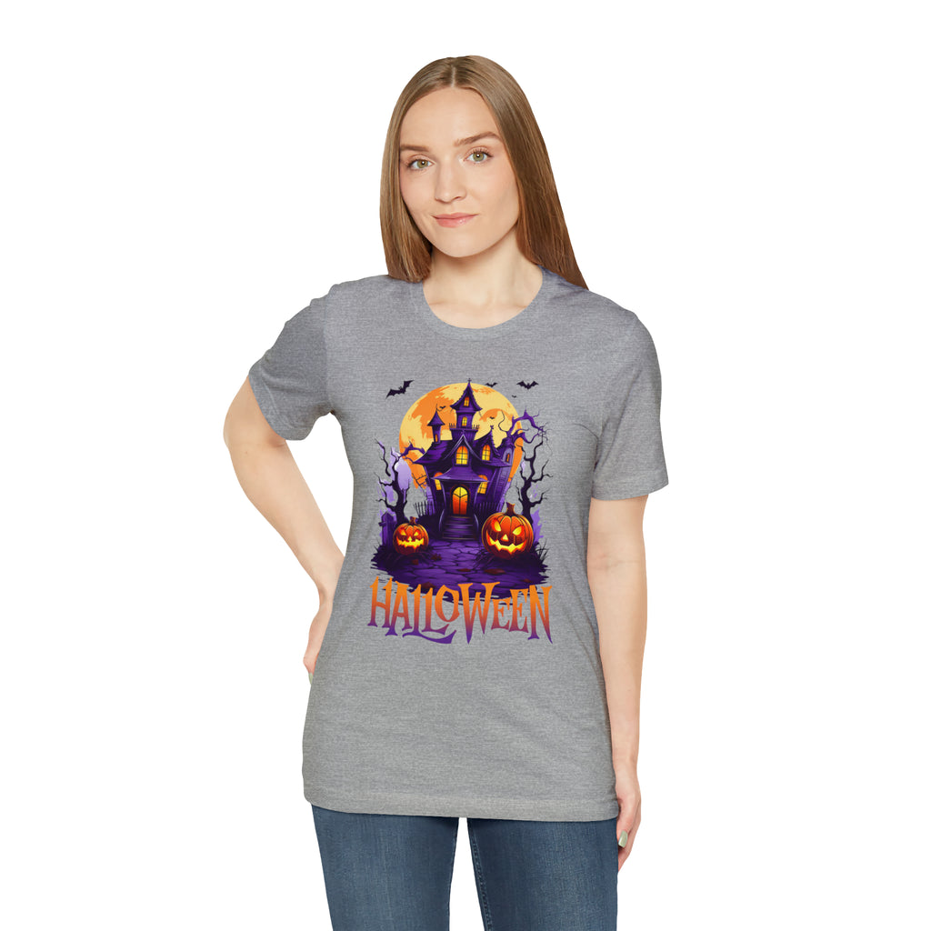 Halloween Haunted House T-Shirt | Scary House with Bats Tee | Bella Canvas 3001Unisex | Spooky Short Sleeve Tshirt